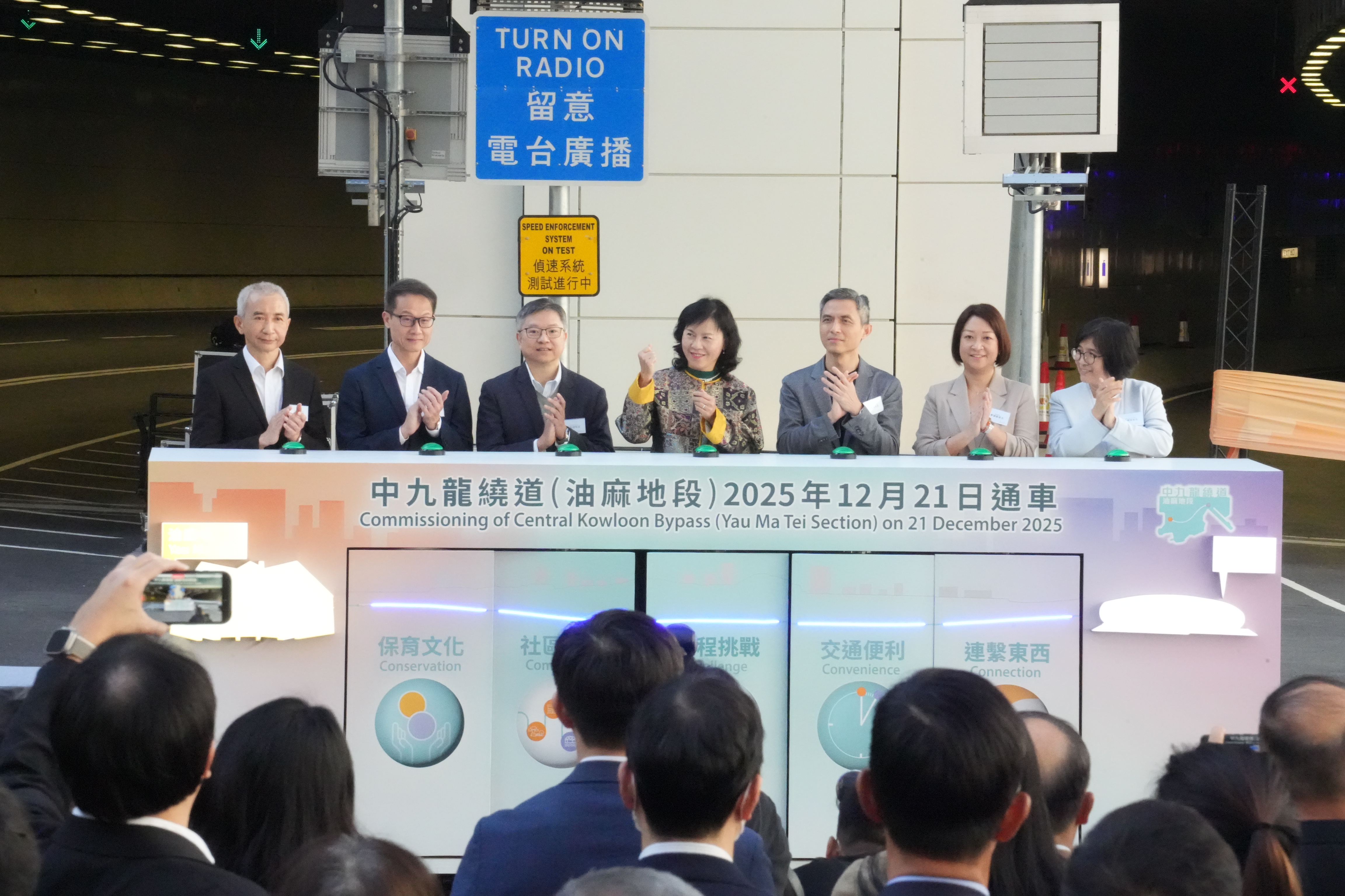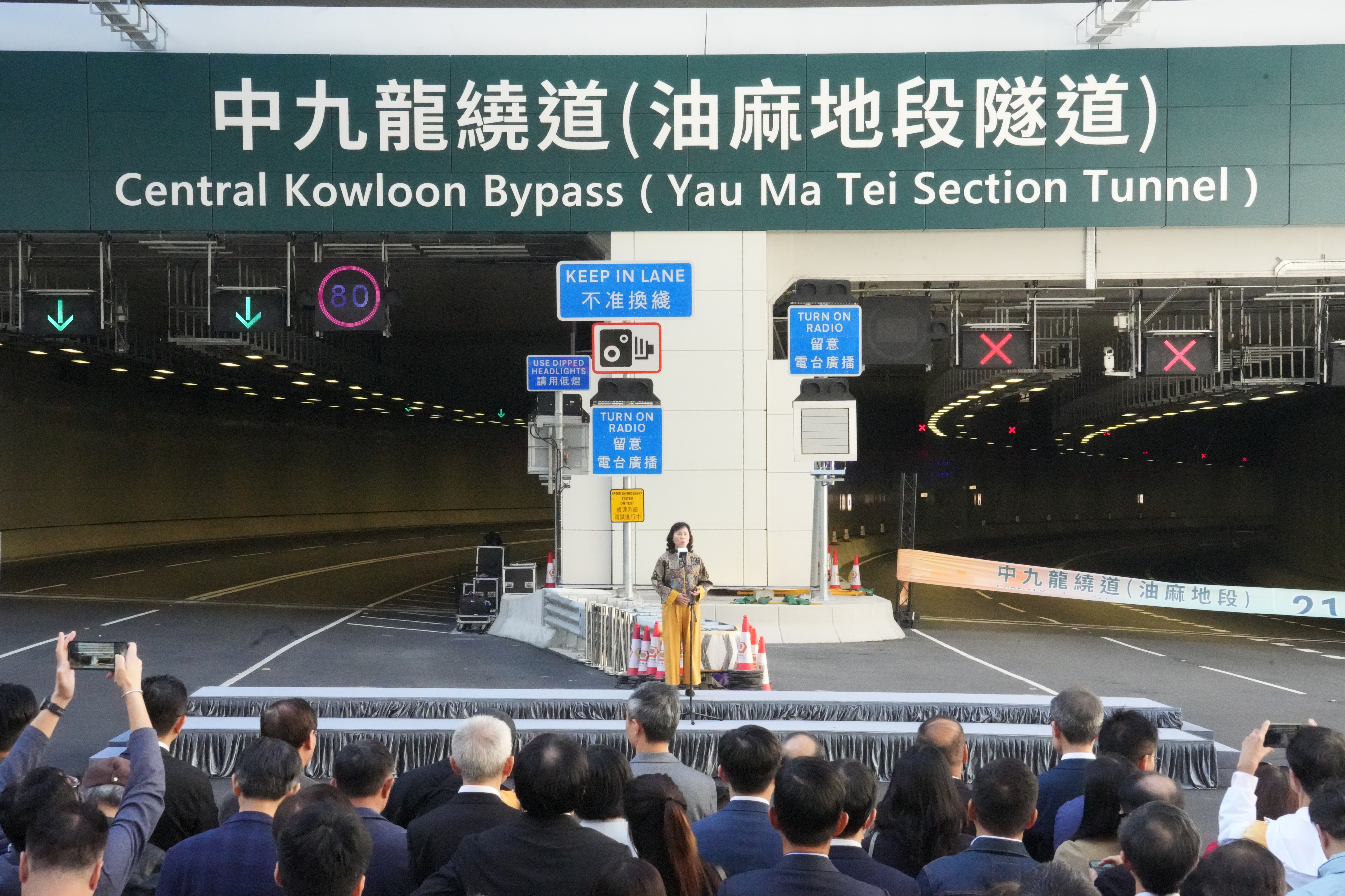 (大公文匯全媒體 記者 王俊傑)中九龍繞道(油麻地段)通車儀式今(21日)早舉行,運輸及物流局局長陳美寶出席儀式時表示,工程上天、下地、出海,涵蓋隧道爆破、加建天橋等複雜工序,需要兼顧鬧市施工、環境評估及居民需要,感謝工程團隊成功克服各種困難,令城市運轉從未停步。