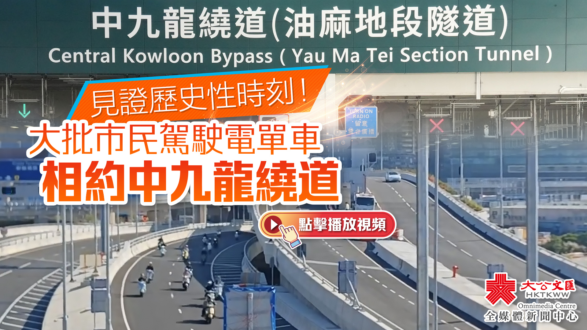 大公文匯全媒體報道,中九龍繞道(油麻地段)今日(21日)上午10時正式通車,為市民往返西九龍與東九龍提供更便捷的出行體驗。今日,有不少市民特地相約,成群結隊駕駛電單車,一同見證中九龍繞道開通的歷史性時刻。