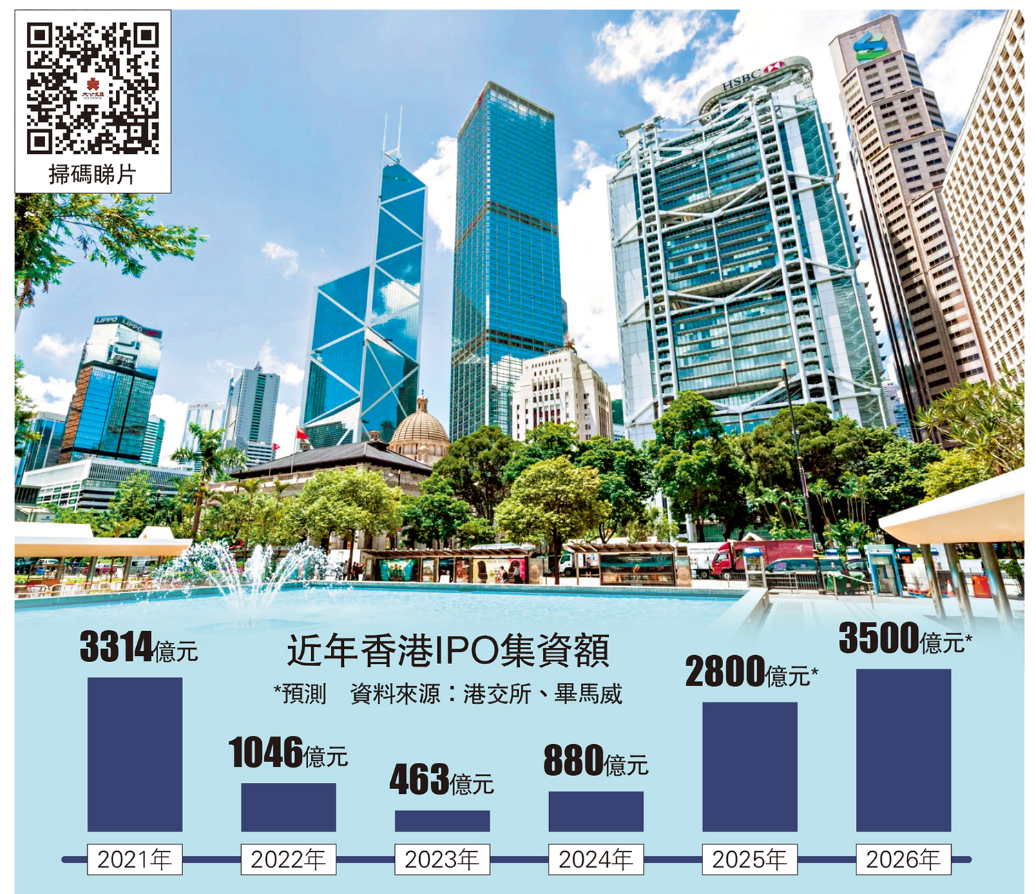 資料顯示,截至今年首11個月新股93隻,合計集資額2594億元,按年升228%。多家會計師行預測,明年集資額超過3000億,保持全球前三位置。
