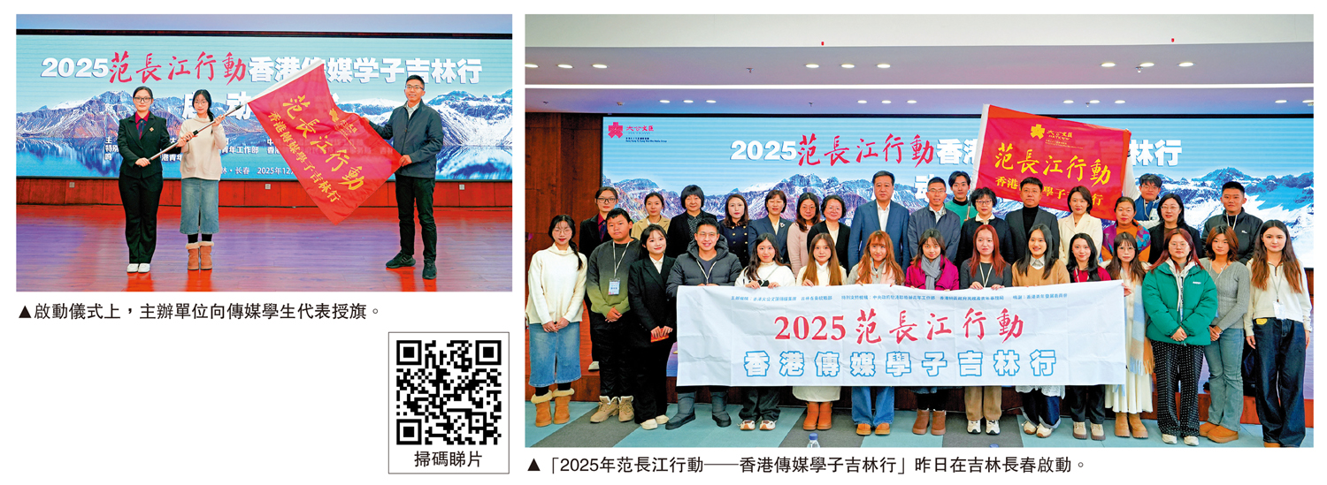 (大公報 記者 盧冶、林凱 吉林長春報道)由香港大公文匯傳媒集團、吉林省委統戰部聯合主辦的「2025年范長江行動─香港傳媒學子吉林行」,昨日在吉林大學鼎新圖書館啟動。吉林省委統戰部副部長、省僑辦主任辛靜在致辭中表示,吉林與香港雖相隔千里,卻始終心意相通,期待香港傳媒學子在吉林期間,以青年獨特的視角和筆觸,將吉林的高質量發展故事講透、講好。
