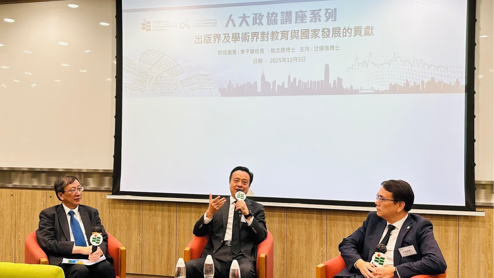 香港教育大學(教大)於12月在北角教學中心舉辦第二階段「人大政協講座系列」(2025-26)第一講,主題為「出版界及學術界對教育與國家發展的貢獻」,探討文化出版及學術研究在國家發展中的重要角色。講座由第十四屆中國人民政治協商會議全國委員會常務委員(全國政協常委)、大眾文教集團董事局主席姚志勝常委,以及第十四屆中國人民政治協商會議全國委員會委員(全國政協委員)、教大校長李子建教授主講。
