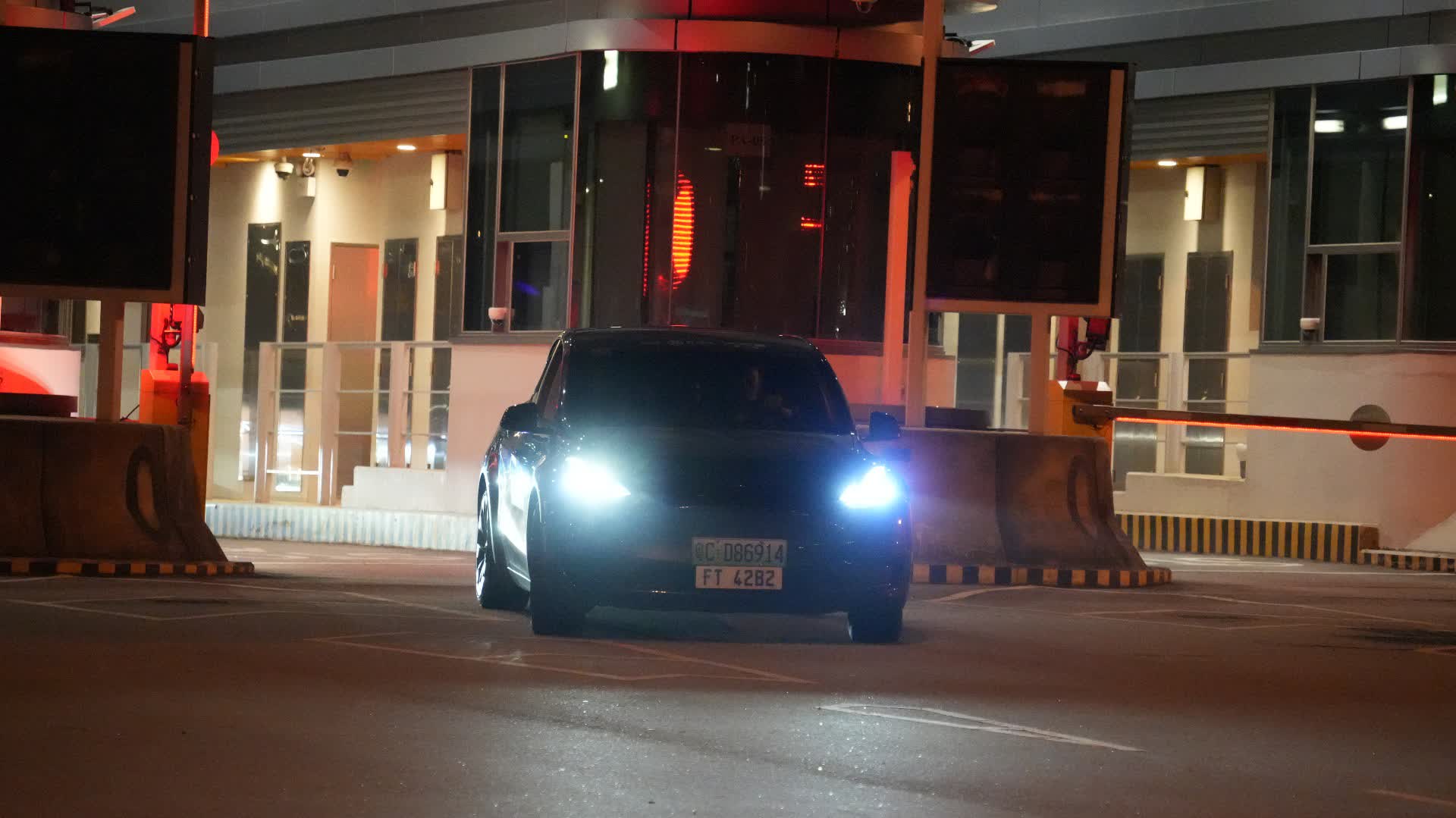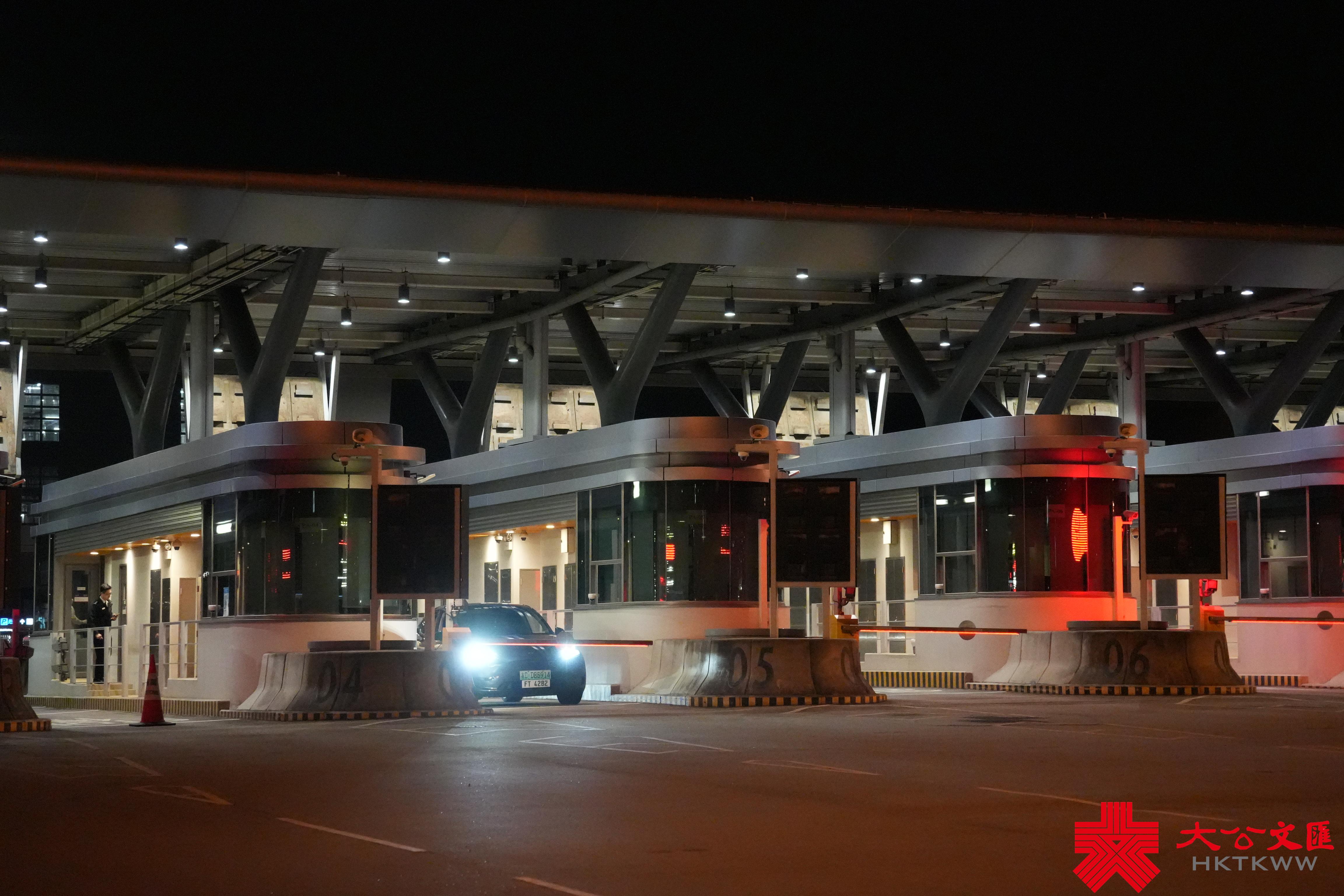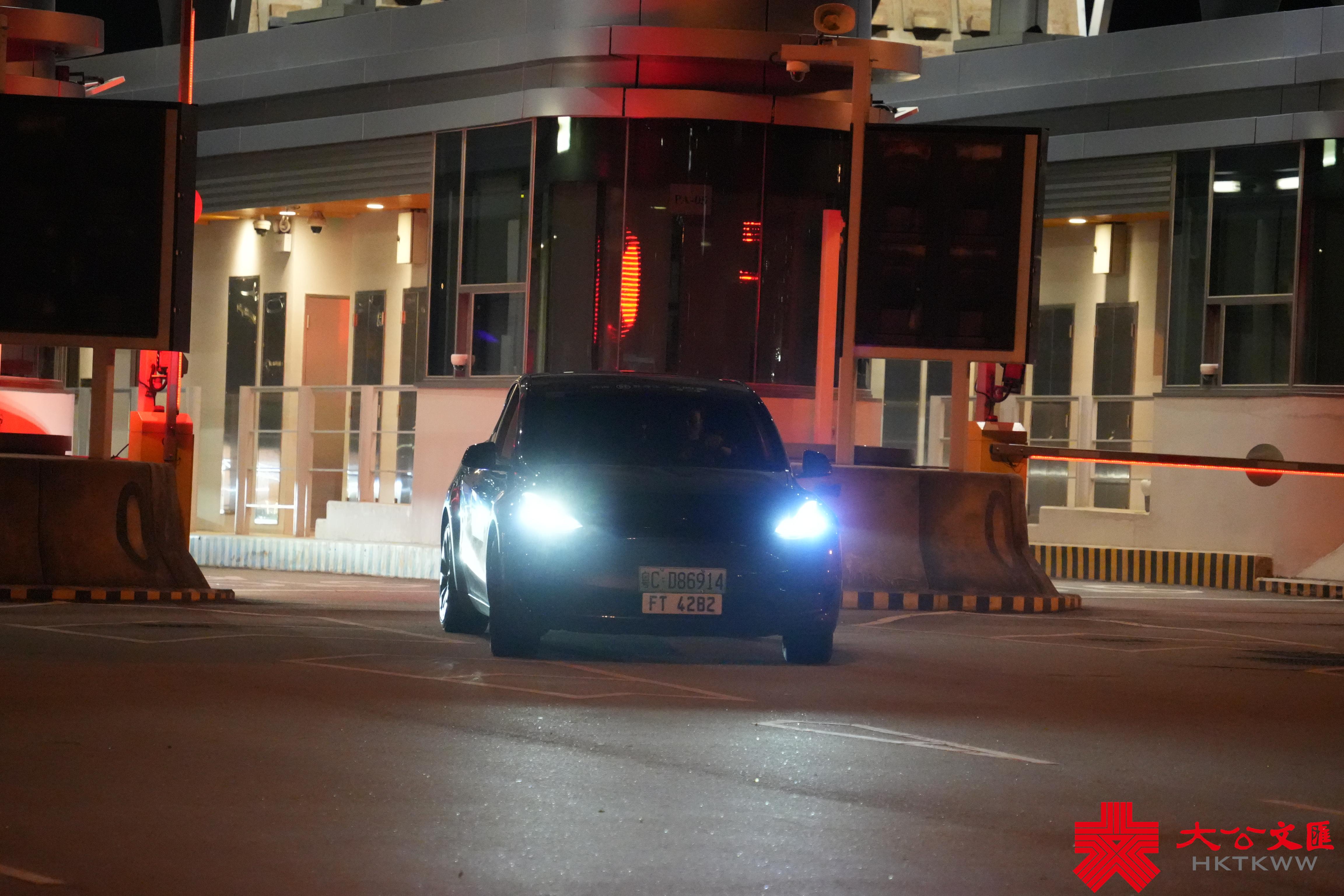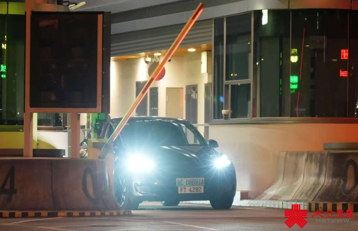 大公文匯全媒體報道,「粵車南下」進入香港市區政策今日(23日)凌晨實施,首架灰色Tesla私家車於凌晨約0時49分駛經港珠澳大橋香港口岸的過境檢查閘口,隨即入境香港市區。大公文匯全媒體記者現場所見,大約10架私家車經「粵車南下」駛入市區。