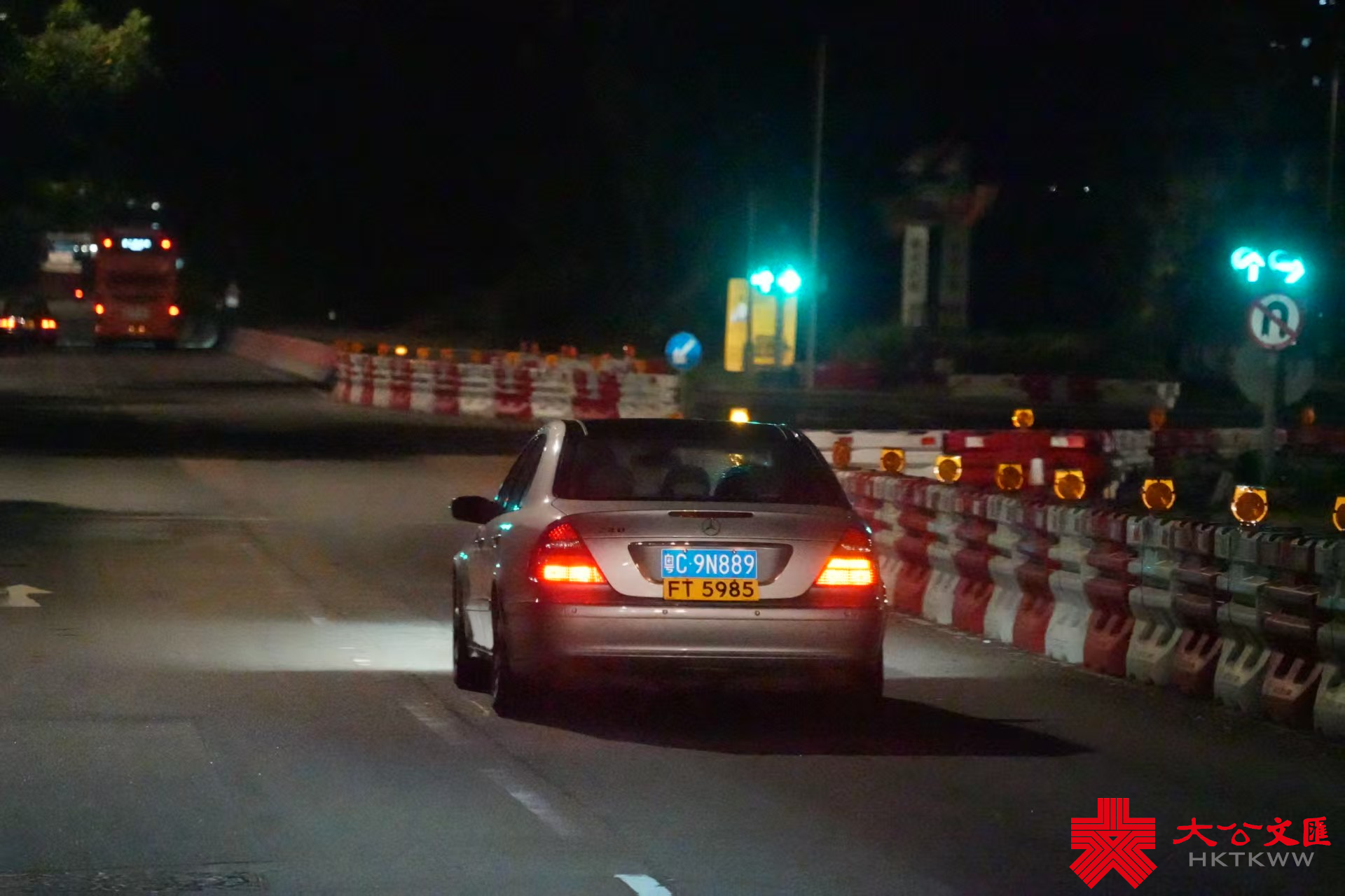 該架灰色車輛同時掛有「FT4282」及「粵CD86914」兩個車牌。車主彭先生本身經商,因業務往來需時常往返香港等地。他提到,大橋行車大概40分鐘,抵港後的安檢非常便捷和順暢。