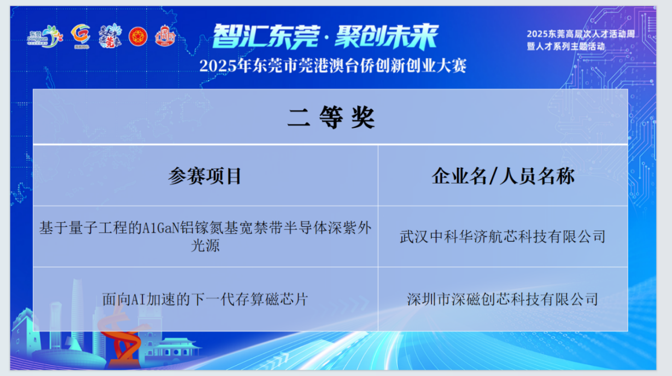 來自深圳市深磁創芯科技有限公司是一家致力於研發下一代存算一體磁芯片的初創企業,在本次大賽中獲得二等獎。賽後,團隊成員表示,此次獲獎對初創團隊是極大的信心鼓舞。東莞堅實的製造業基礎與鄰近下游客戶的區位優勢,將為其後續發展提供強大助力。他們期待能充分享受當地針對人才、初創企業及港澳台項目的各項扶持政策,並坦言通過此次大賽結識了眾多優秀同行,獲益匪淺。