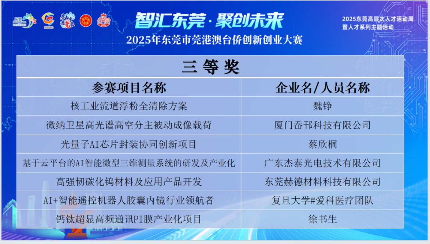 大賽為參賽項目提供了「3萬平方米產業空間+3億基金」、產業空間免租、推薦申報東莞創新科研團隊或青年科技人才創業項目等獎勵措施。大賽的核心目標遠不止於評選,它致力於打造一個「全程賦能、落地導向」的綜合性服務平台。主辦方專門組建了15支專業服務團隊,構建政府、企業、園區聯動的招商服務體系,為參賽項目提供「一對一」精準對接與全流程賦能,推動創新成果從「賽場」快速走向「市場」。