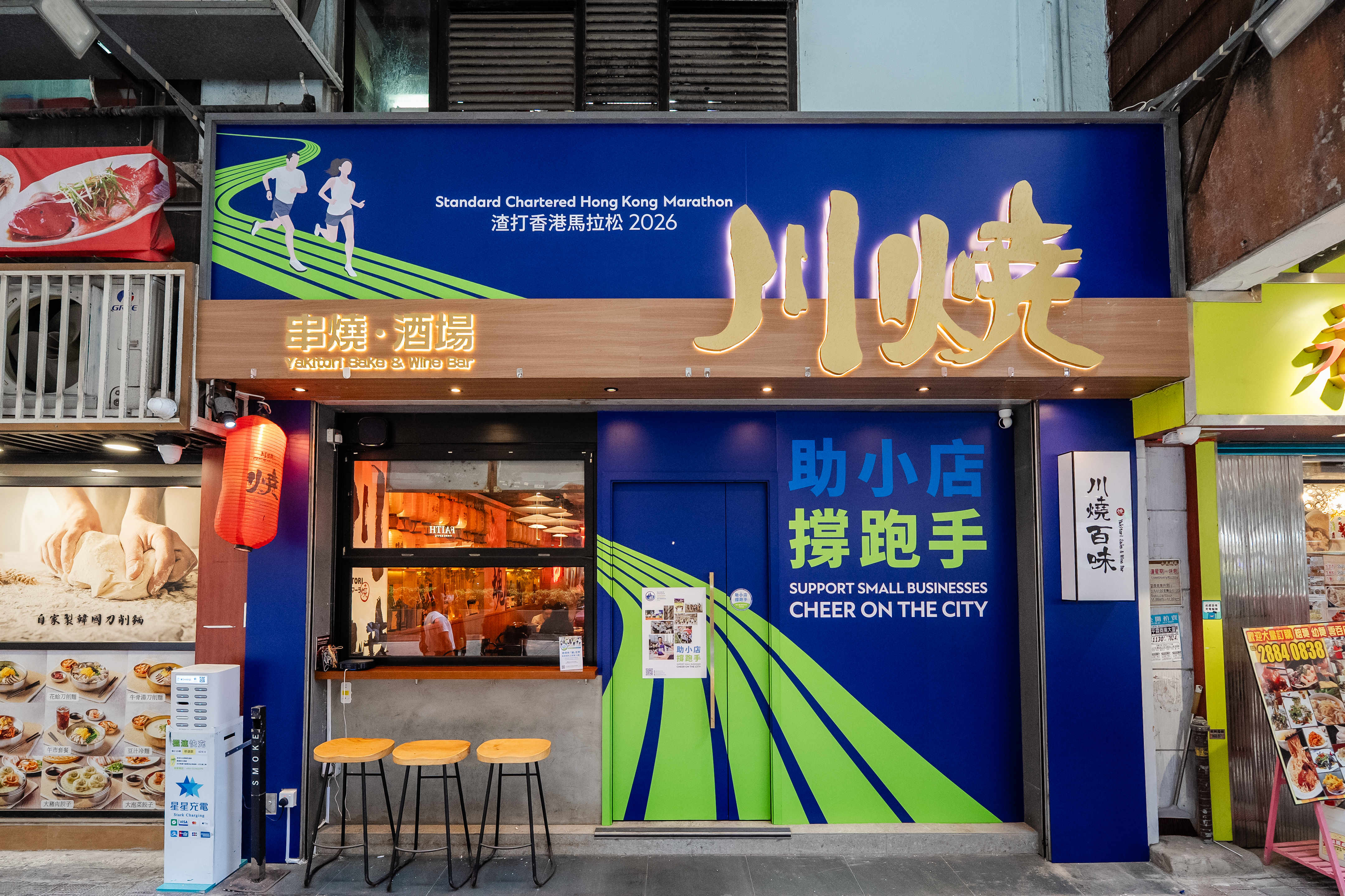 大會去年推出「助小店 撐跑手」計劃,成功為賽事沿途小店帶旺人流,今年進一步將計劃覆蓋範圍擴展至全港各區並聚焦支持餐飲小店,參與小店數目由去年的500間增加至逾700間。由百年老字號茶樓、人氣粉麵舖、文青咖啡店、甜品飲品小食店,到曾獲米芝蓮指南推介的餐廳等,均於即日起化身為打氣站,在店內放置宣傳海報及貼紙,以及推出馬拉松打氣餐等,齊齊為74000名跑手打氣。當中10間參與小店更將舖面化身成為「打卡應援牆」,讓食客一同投入這個一年一度香港最多人參與的體壇盛事。