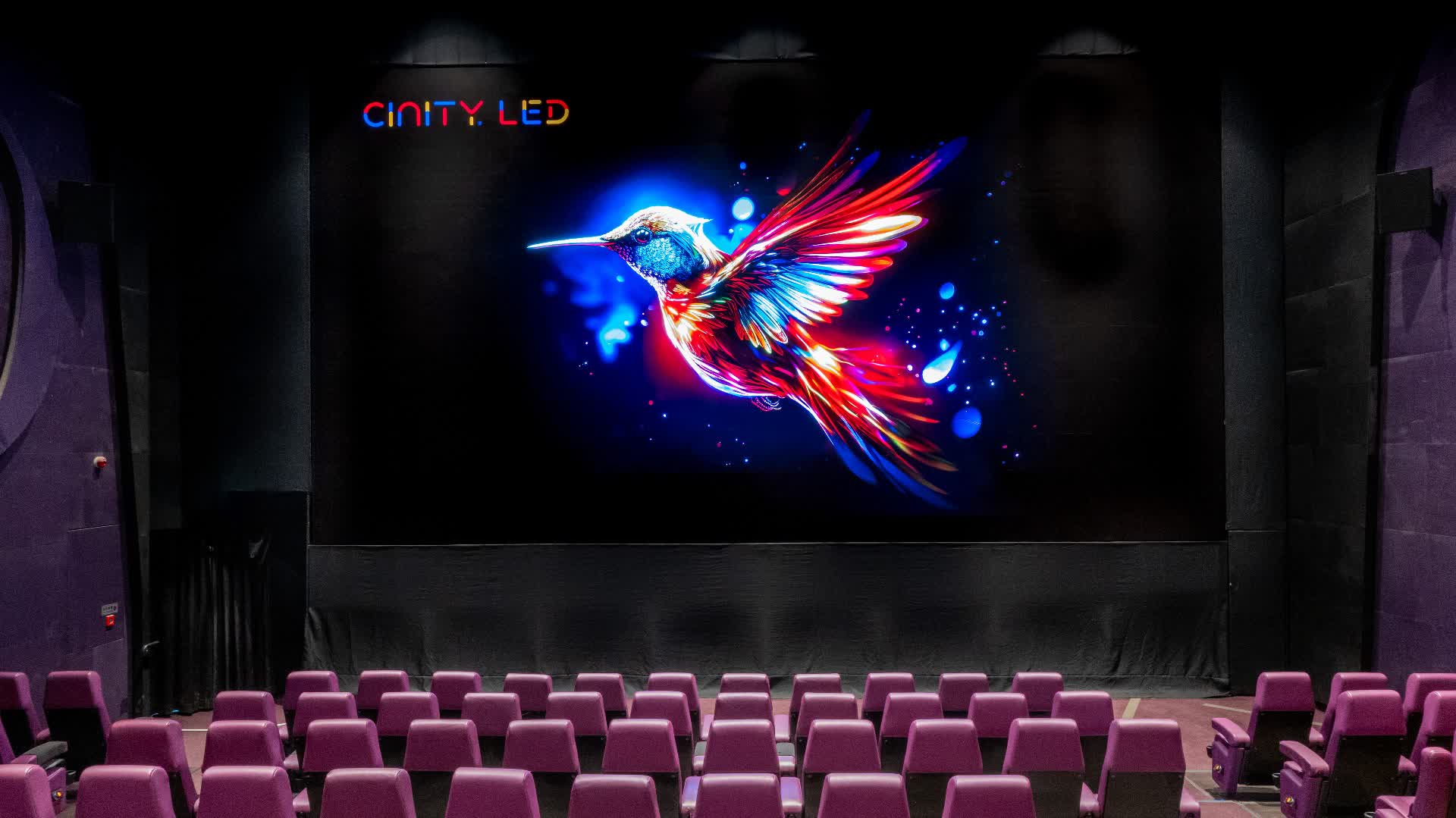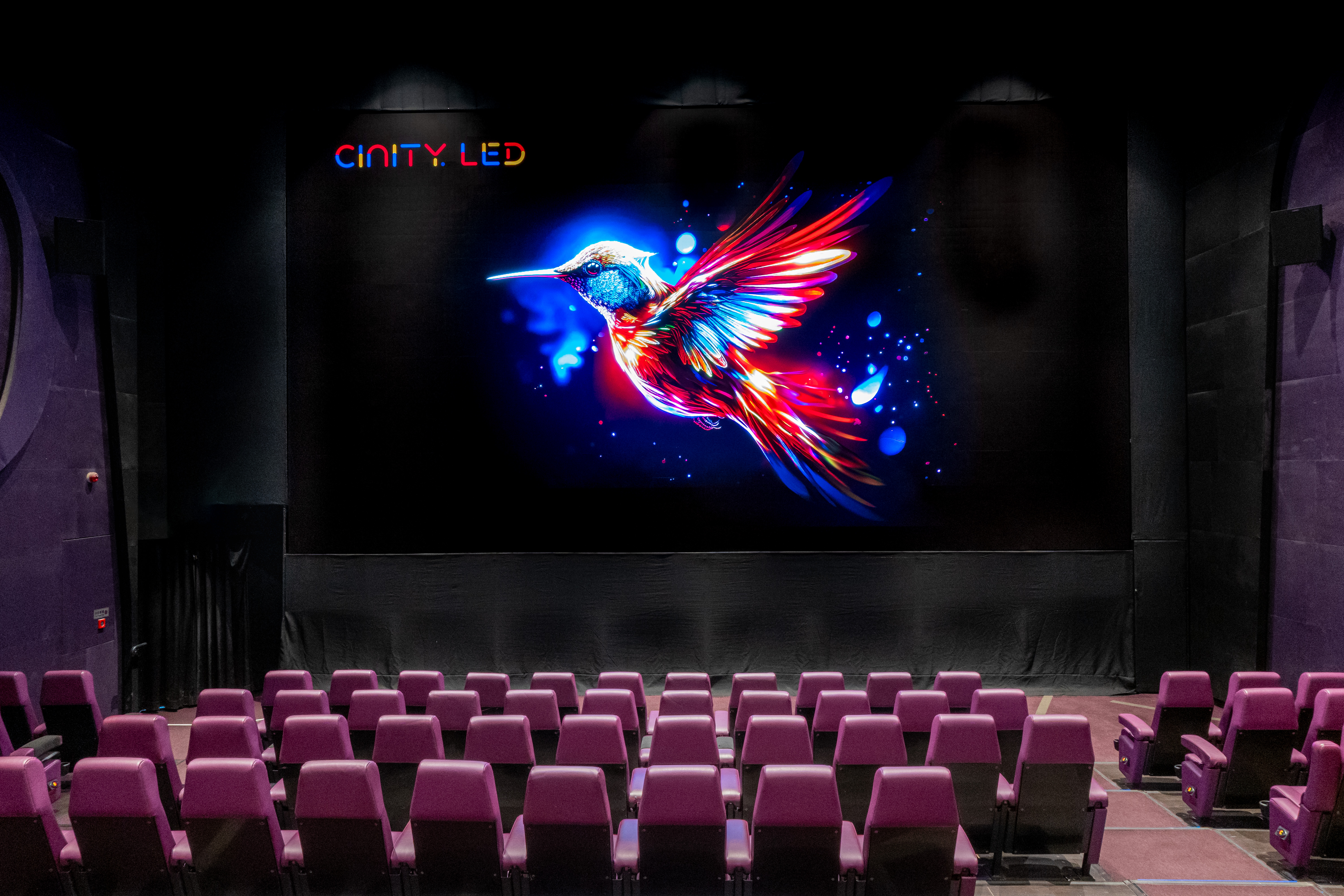 CINITY LED是一套由中國自主研發、結合多項前沿影像技術的新一代直顯式LED放映系統,集成4K、3D、高亮度、高幀率(HFR)、高動態範圍(HDR)、廣色域及沉浸式聲效七大技術,多項關鍵指標達到國際領先水平。系統採用自發光LED顯示技術,亮度、對比度及均勻度均顯著超越傳統投影方式,細節、暗位層次與色彩表現更接近肉眼觀看現實世界的光影效果,同時有效改善傳統投影面臨的光效及銀幕反射限制。