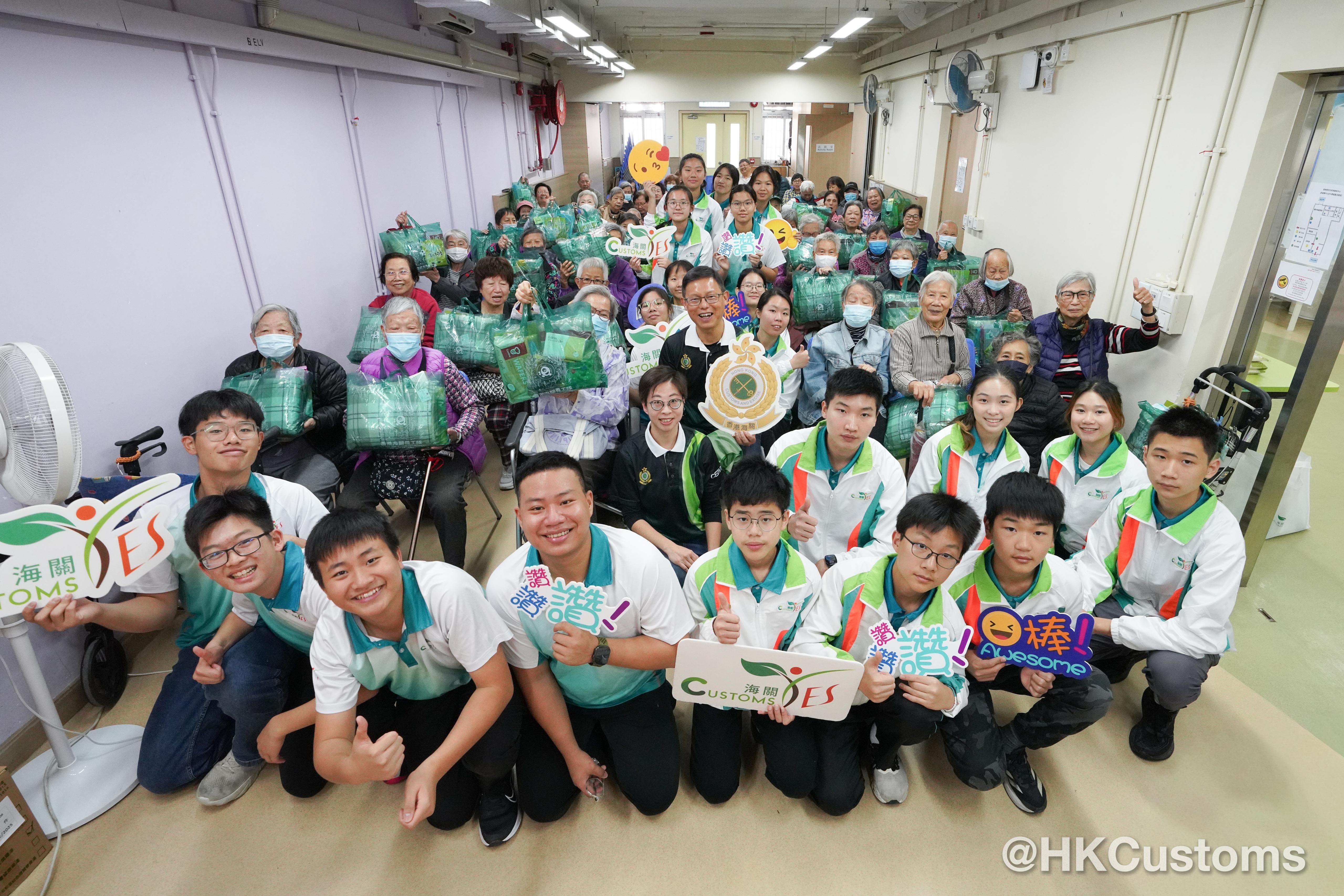 海關義工隊在這幾個週末組成不同隊伍,分批進行探訪活動,並帶同善長捐贈的物資親手送到長者及兒童手中,傳遞關愛。