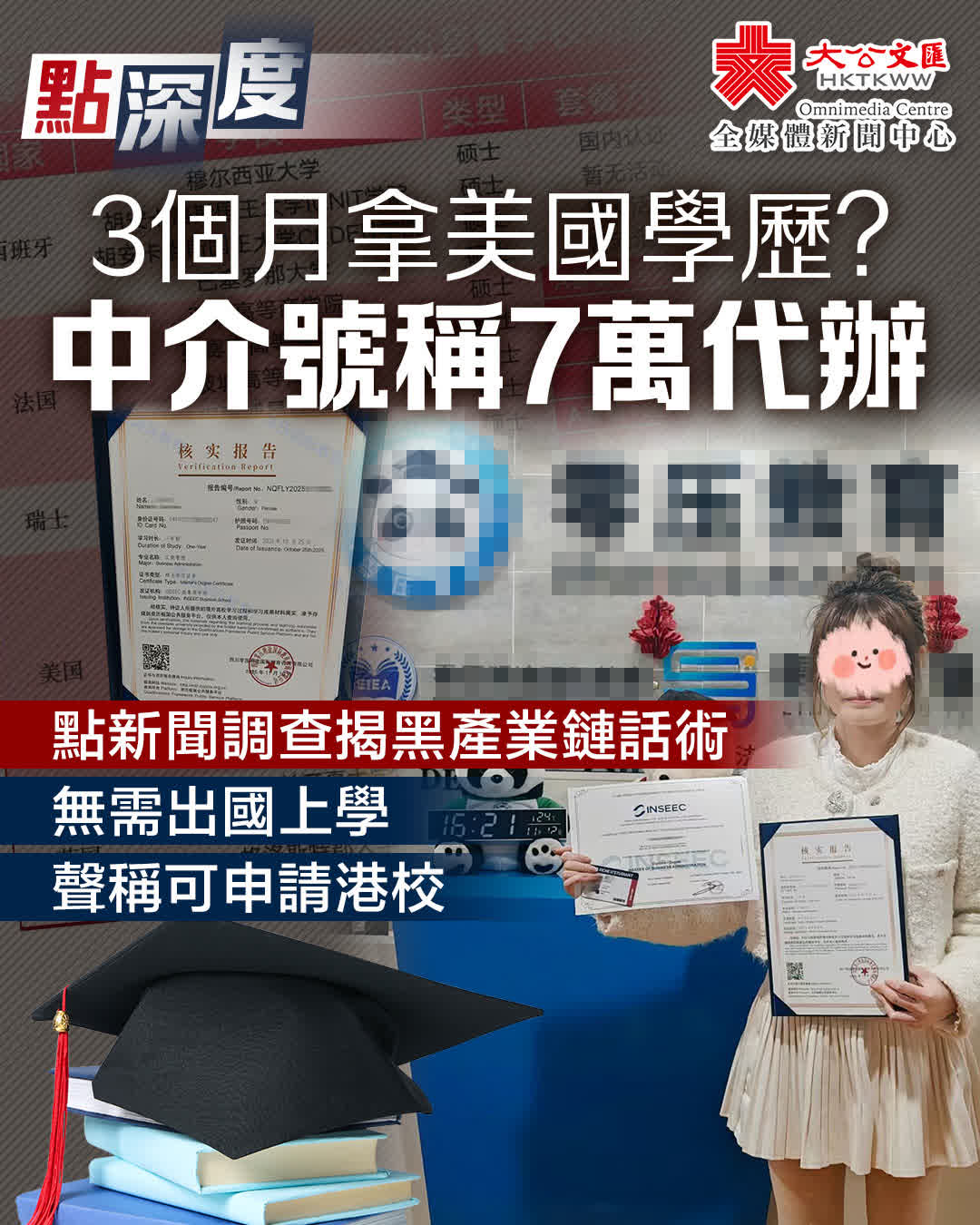 (大公文匯全媒體 記者 俞晝、李望賢)「不出國就讀美國名校」「最快三個月拿學位」「官方認證官網可查」……近期,記者在社交平台發現不少海外「速成學歷」的廣告,有的直接曬出多個學員的海外本科學位證書,他們有的因此成功申請到香港、新加坡、美國、加拿大、澳洲等地的研究生,有的如願拿到心儀的工作offer,而這些廣告的下面湧入了大量諮詢者,「速成學歷」買賣市場可見一斑。