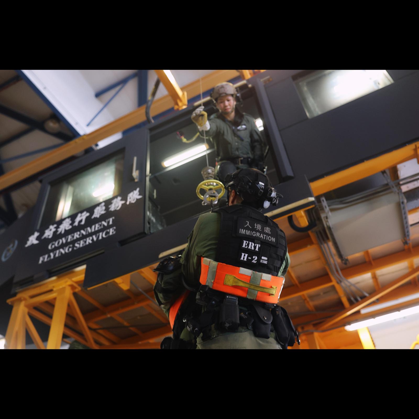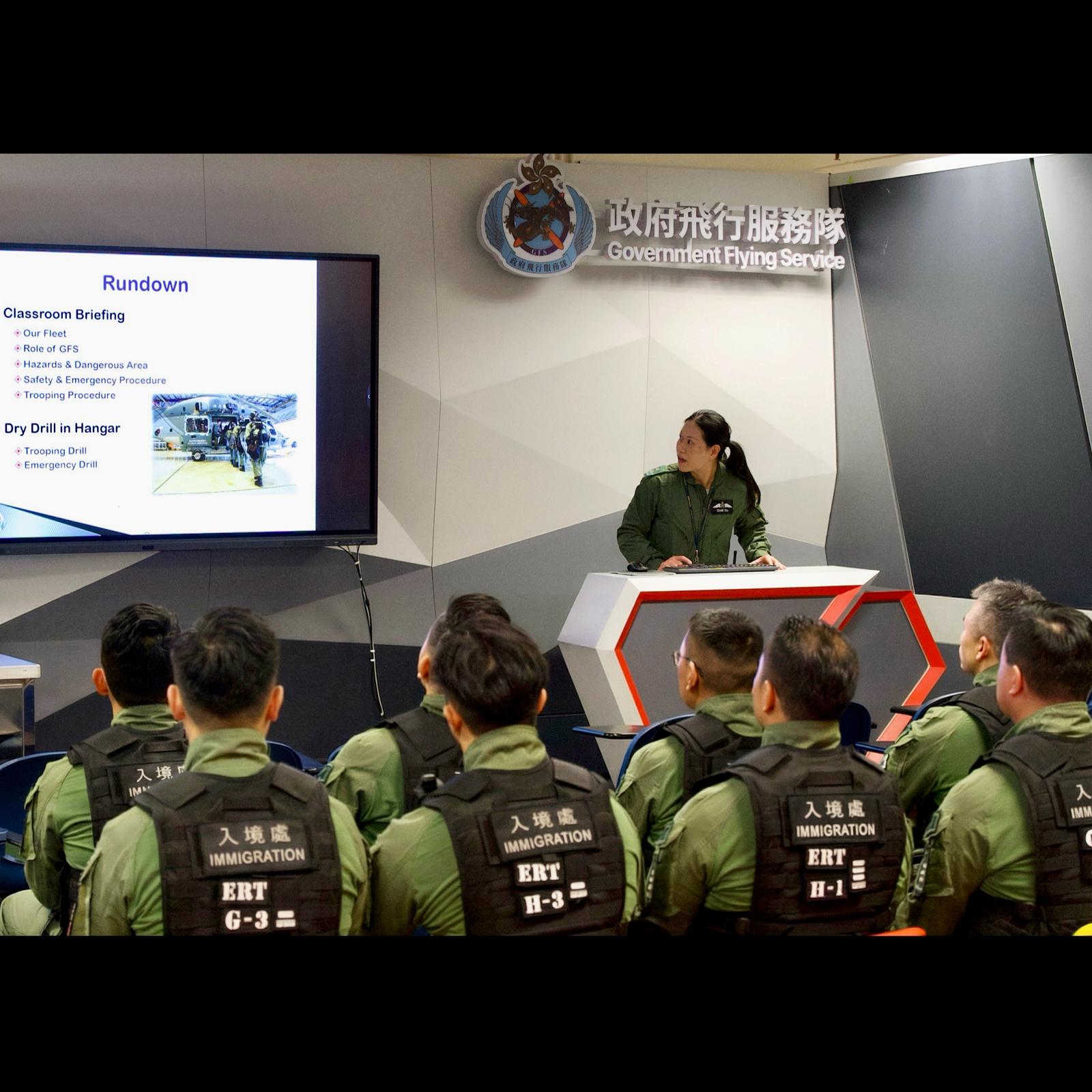 演練內容除了讓中心人員認識直升機的基本運作和飛行理論、安全須知、于飛行時攜帶槍械及防暴裝備時的編排和策略,以及與地面部隊的溝通和支援技巧外,更包括實戰飛行,在東九龍和新界北的指定直升機坪緊急登機及降落。今次的演練完滿成功,進一步加強了入境處與飛行服務隊的合作默契。