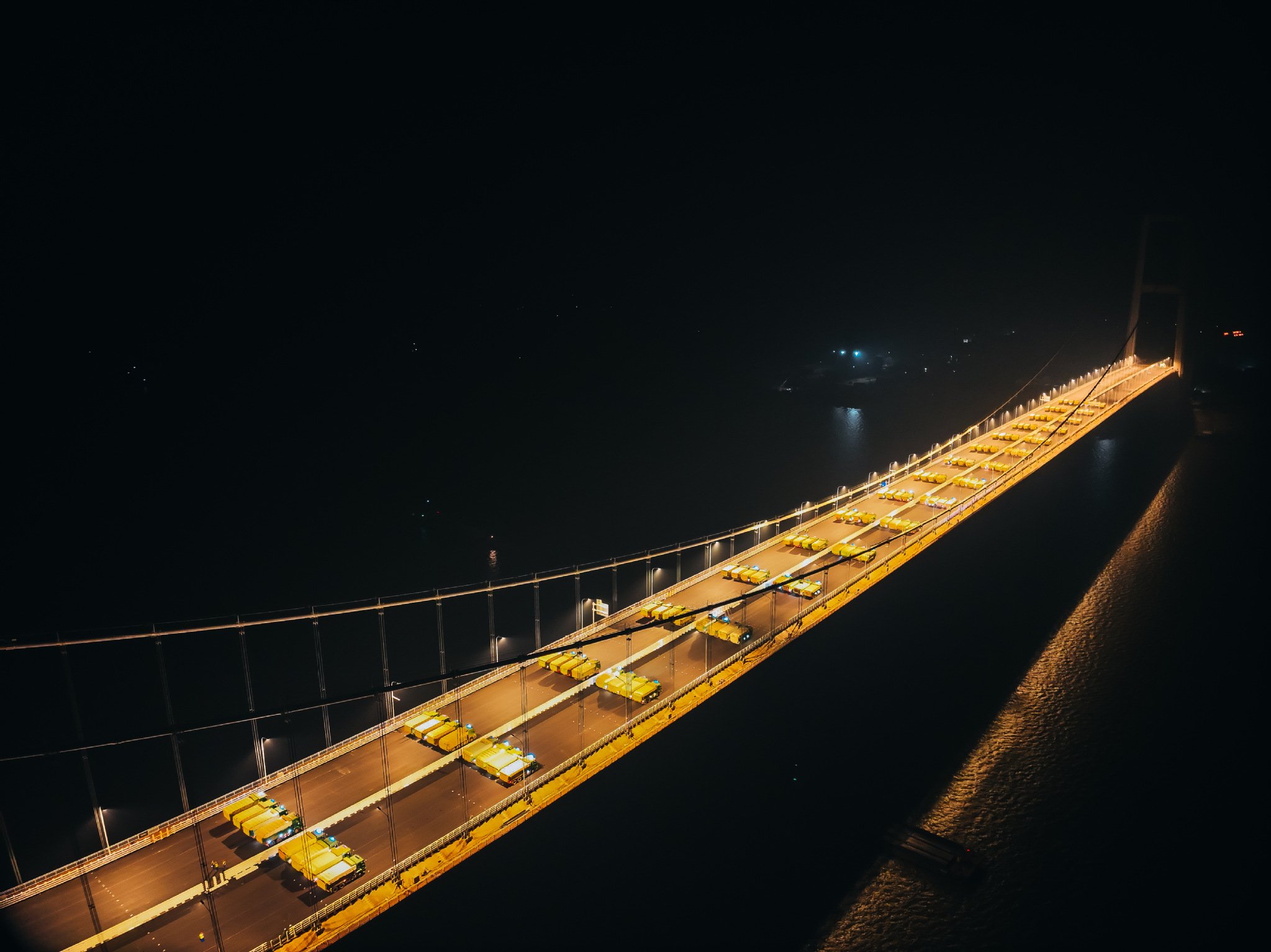 本次荷載試驗由中鐵大橋科學研究院全程主導,是對大橋結構性能的全面驗證。試驗自12月18日晚啟動,包含初始狀態調查、靜載試驗和動載試驗三個部分,全橋共布設292個應力測點、50餘個位移測點及30餘個索力測點,對主樑撓度、應變分布、橋塔偏位、吊索索力等關鍵指標進行實時監測。