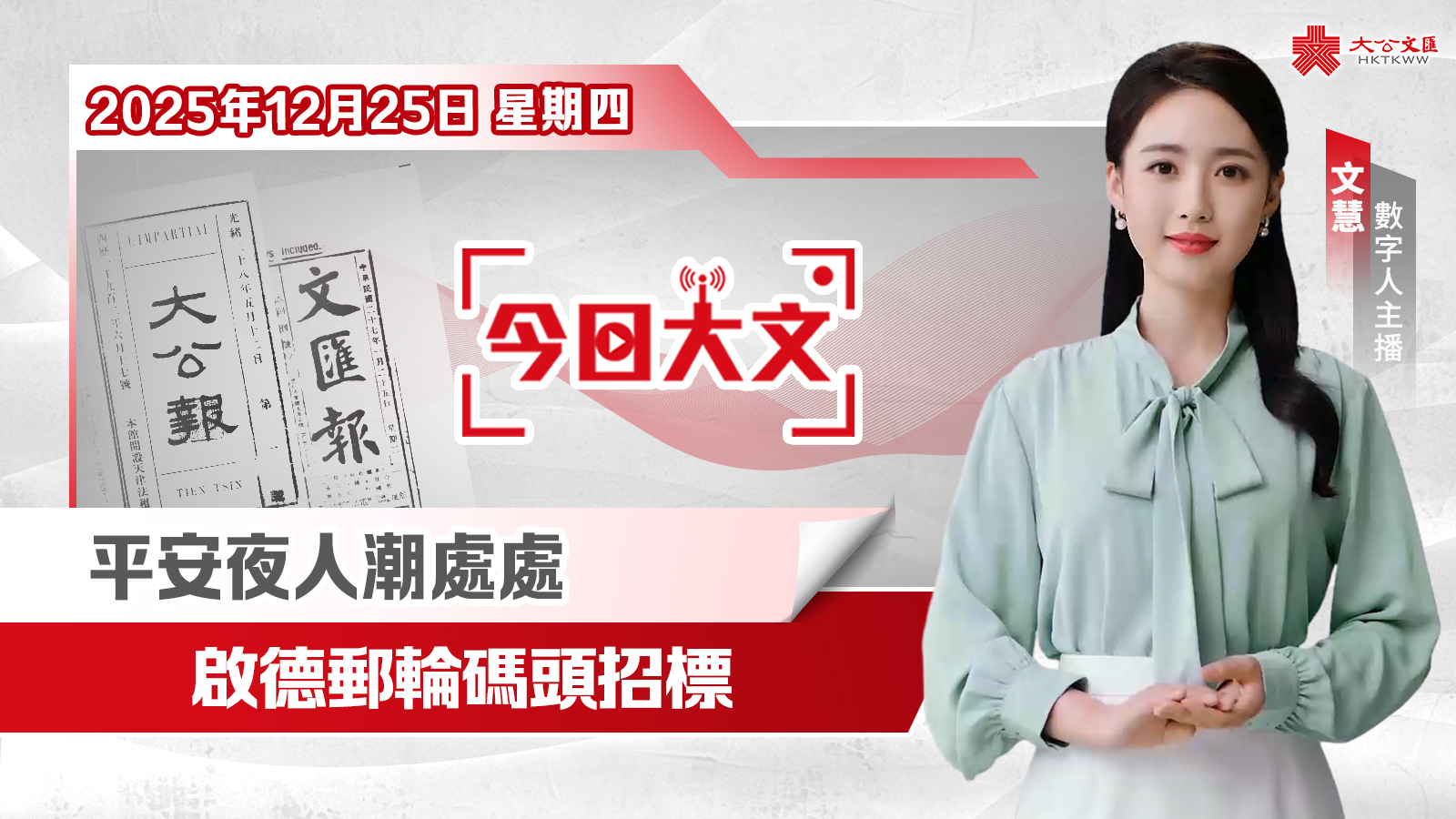 大公文匯網報道,今天是2025年12月25日(星期四),大公文匯網與您速覽報紙看點。