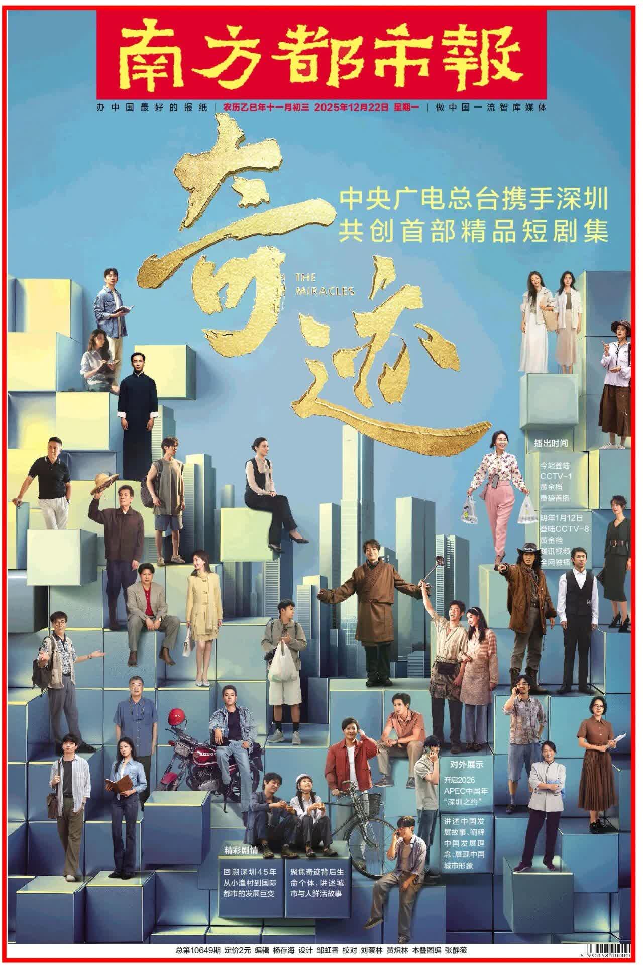 此外,2025年是深圳經濟特區成立45周年。《奇跡》用短小精悍的短劇集形式,回溯深圳45年來從小漁村到國際化都市的發展巨變。2026年,亞太經合組織(APEC)第三十三次領導人非正式會議將在深圳舉行,這部以深圳經濟特區發展歷程中的人與事為原型和素材、講述中國式現代化奇跡和中國人民追求美好生活故事的精品短劇集,也將開啟2026APEC中國年「深圳之約」的文藝序章。