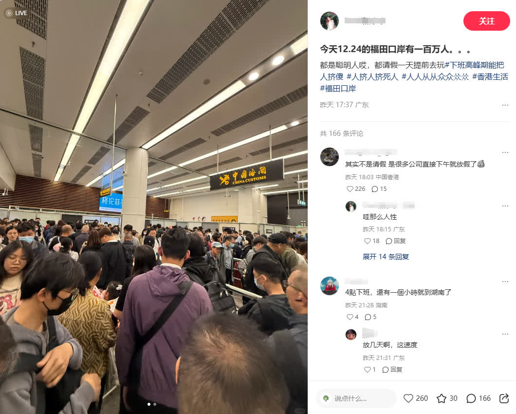 網友表示,福田口岸有一百萬人!本以為提早出門的是聰明人,誰知大家都是聰明人!