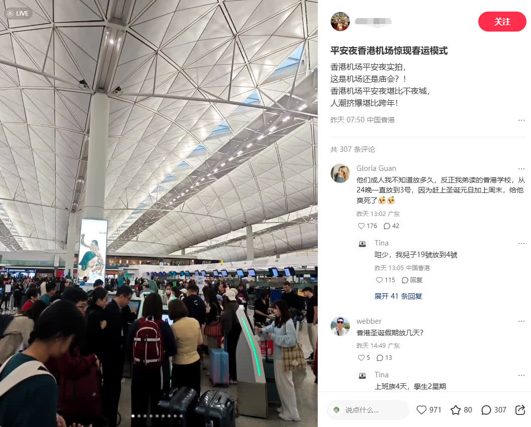 機場昨日也迎來離境人潮,許多市民外出度假。網友不禁感歎:這是機場還是廟會?