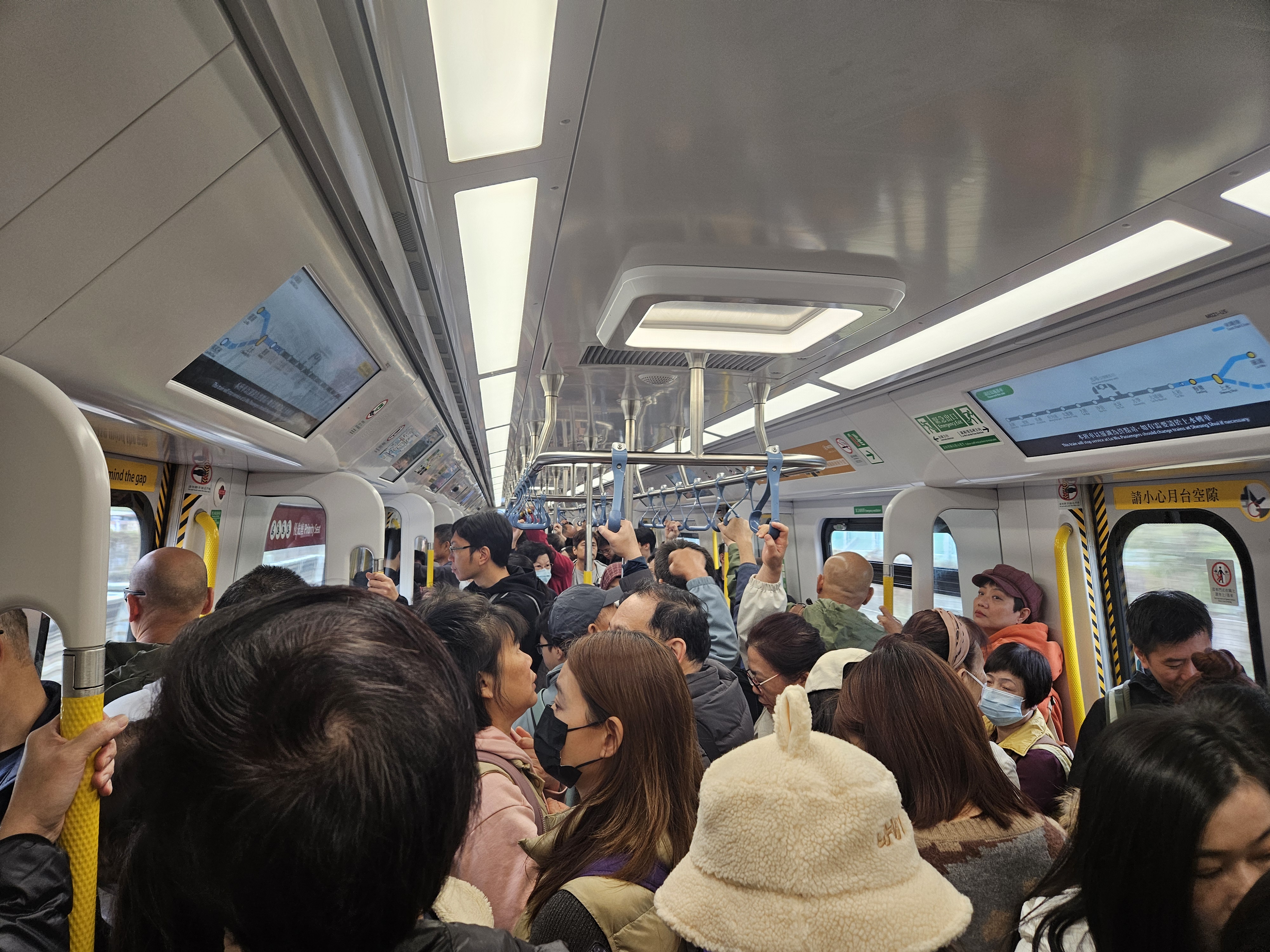 今日上午,全港各個口岸都擠滿了準備出遊的港人。大公文匯全媒體記者在東鐵綫列車上看到,車內人頭湧湧,車廂內的人潮十分擁擠,羅湖口岸過關北上的人流量亦十分大,幾乎逼爆口岸。