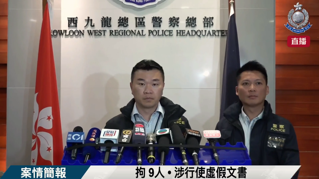 周三(24日)凌晨零時左右,其中一名被拘捕的男子,帶上頭套並在重案組探員押解下,由便裝警車載離田心警署;另一輛警車則載有大批作為證物用的文件。同日,警方再拘捕3男3女公司負責人及職員(23至48歲),涉嫌「行使虛假文書」,案件累計9人被捕,全部人現正被扣留調查。