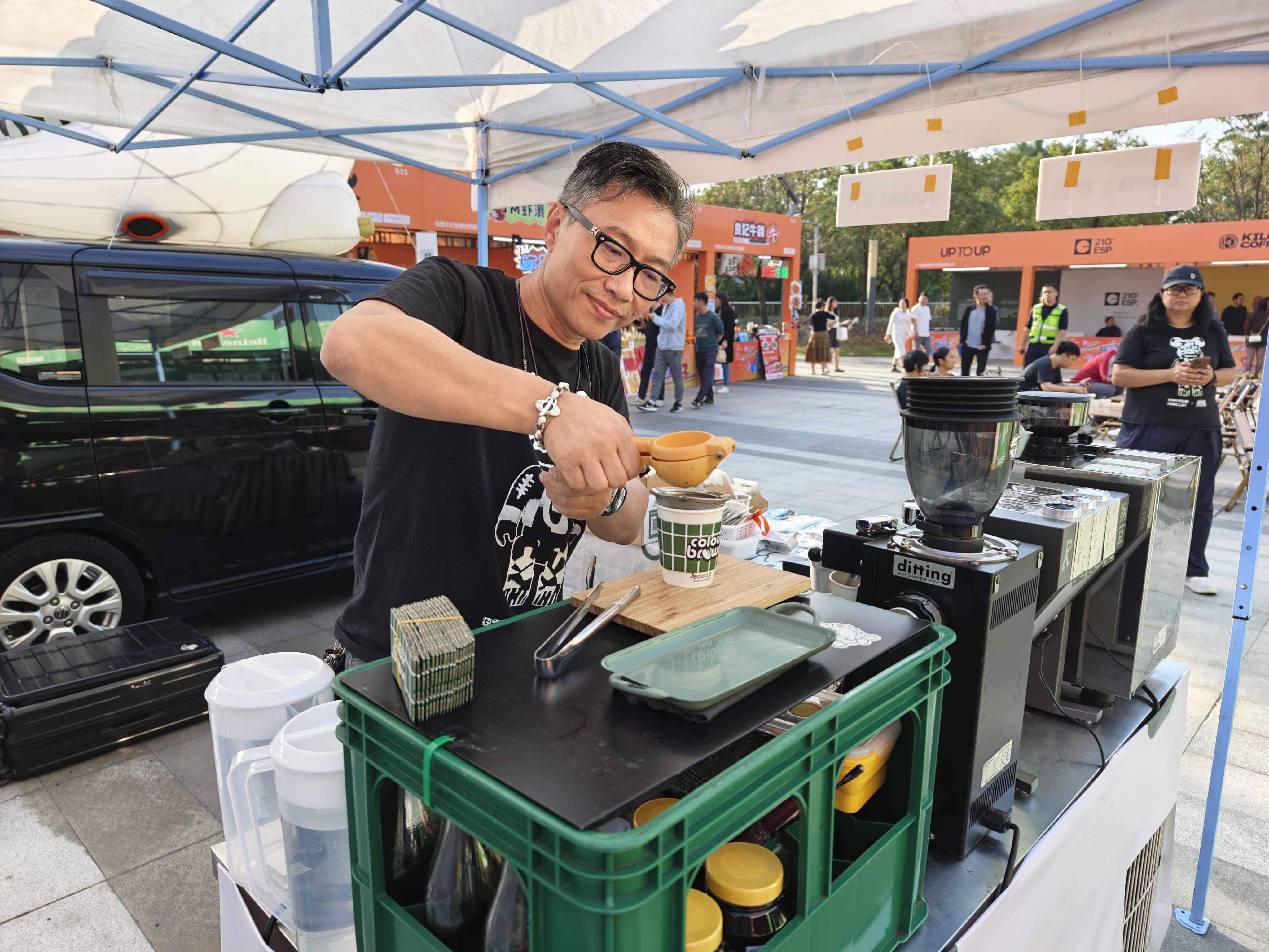 眾多展位中,一個以鈴木麵包車為襯托的咖啡鋪讓人耳目一新。「今天專程從香港開車來東莞擺攤,所有擺攤用的工具和產品都裝在這輛小車裏帶過來。」Colour Brown 咖啡品牌主理人李健明介紹,自己在香港有多間咖啡店,此次來東莞參展,為的是了解內地咖啡愛好者的需求。「這些年我都常到內地參加各種咖啡比賽和咖啡市集,感受到內地咖啡文化的蓬勃發展。」 他透露,自己這次帶來了不同產地和風味的咖啡豆,還把以自家寵物狗為原型設計的吉祥物冰箱貼展示出來,希望得到內地消費者的認可。李健明坦言,自己仍在不斷學習了解內地咖啡行業的運作模式,未來計劃在大灣區內地城市開一間自己的咖啡館。