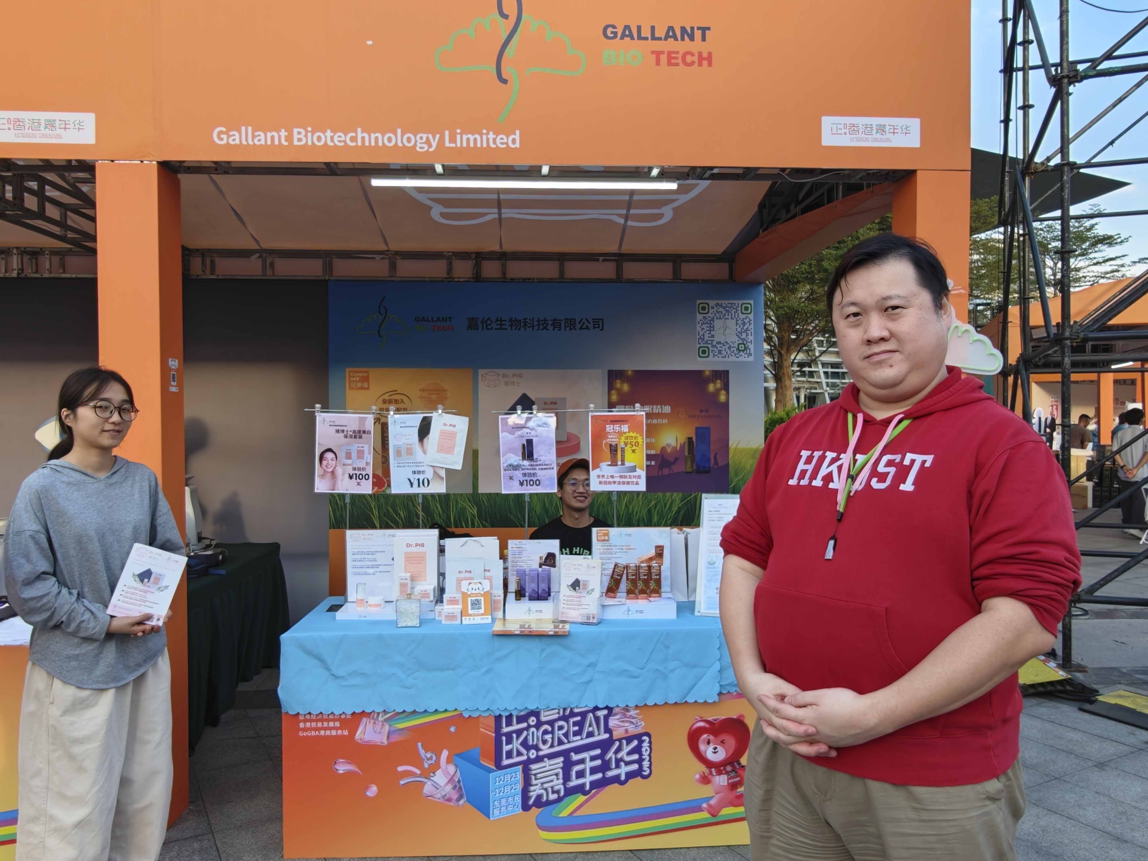 在Gallant Biotechnology Limited的展位上,冠樂福西柚泡騰片、豬博士草本精華面膜、雅歌哪噠精華油等產品以極具性價比的價格吸引着過往的女性消費者。品牌創始人陳嘉倫介紹,公司脫胎於港科大的創業項目,正式成立後選擇在中山落戶。「當地給予了創業園區的租金優惠,深中通道開通後我往返香港也十分方便。」他希望通過參展了解東莞的消費市場,為公司拓展內地業務做調研。