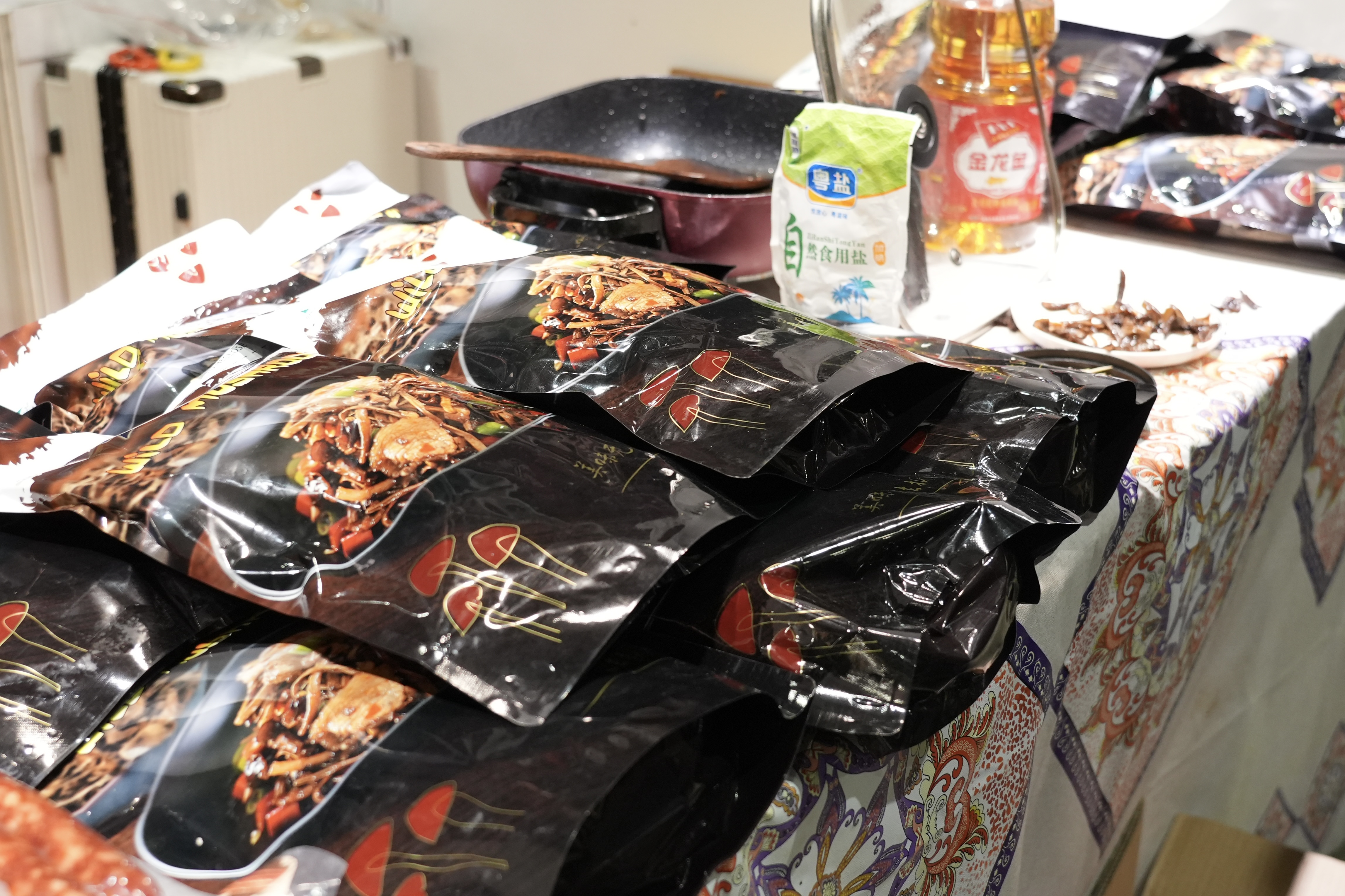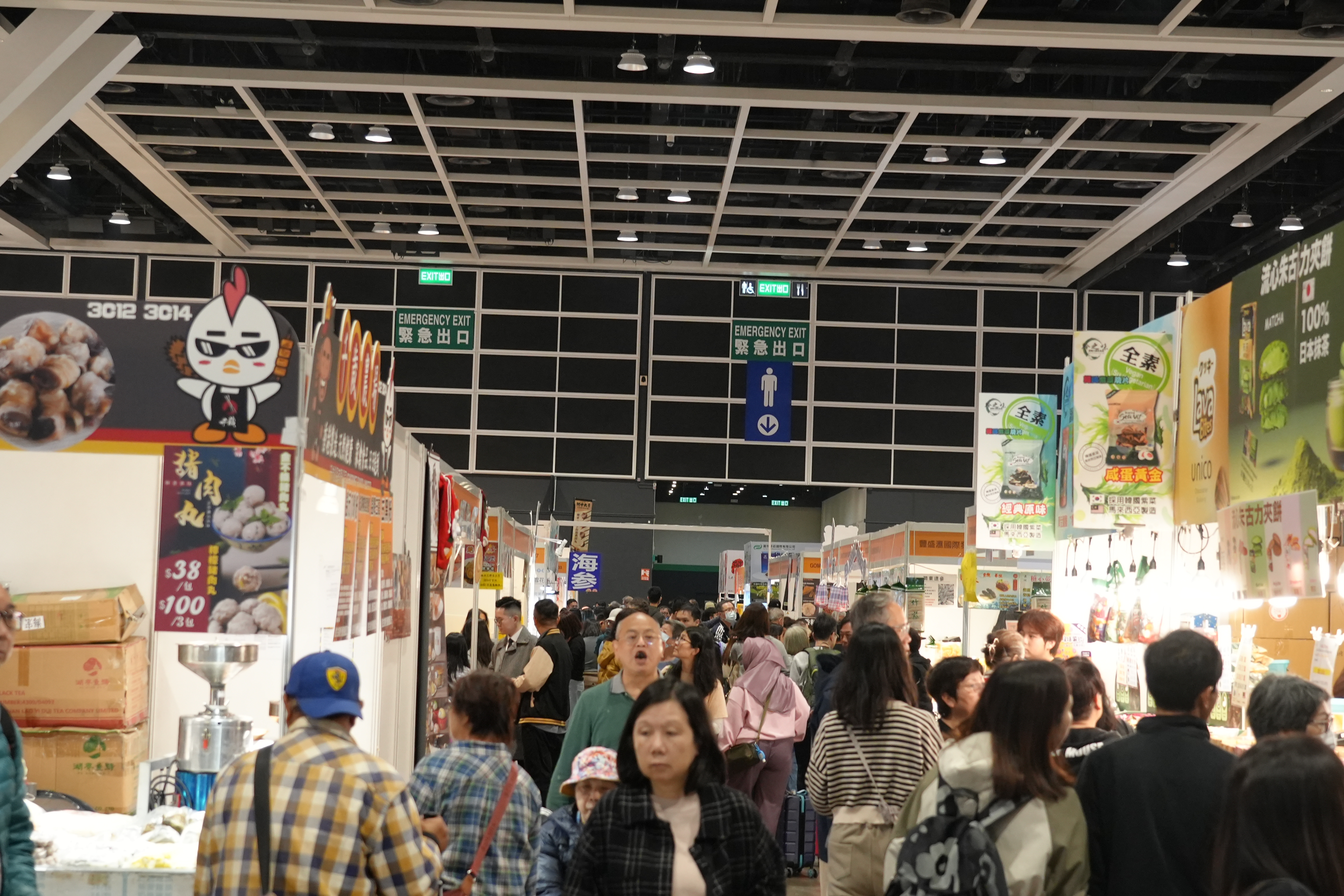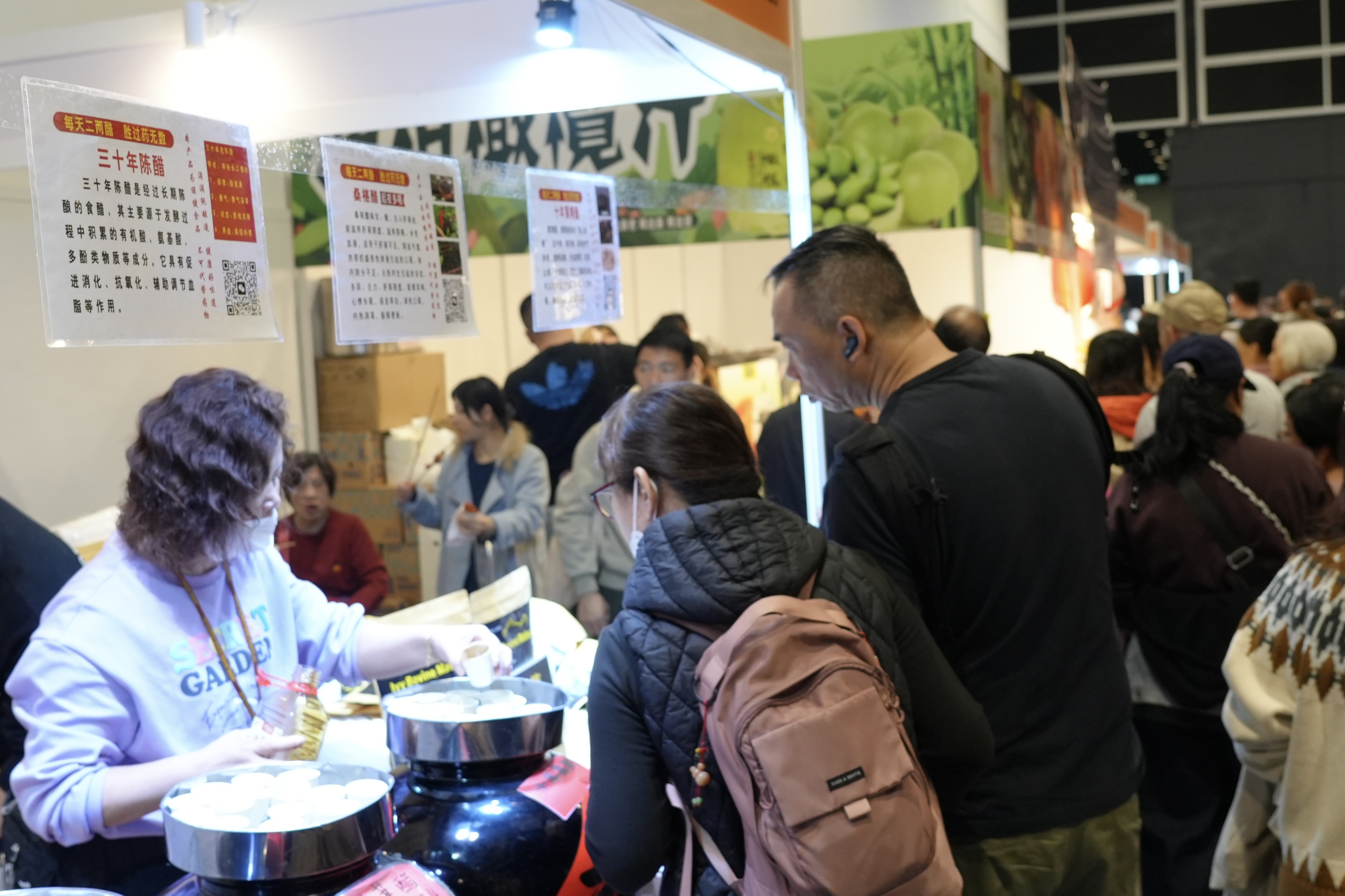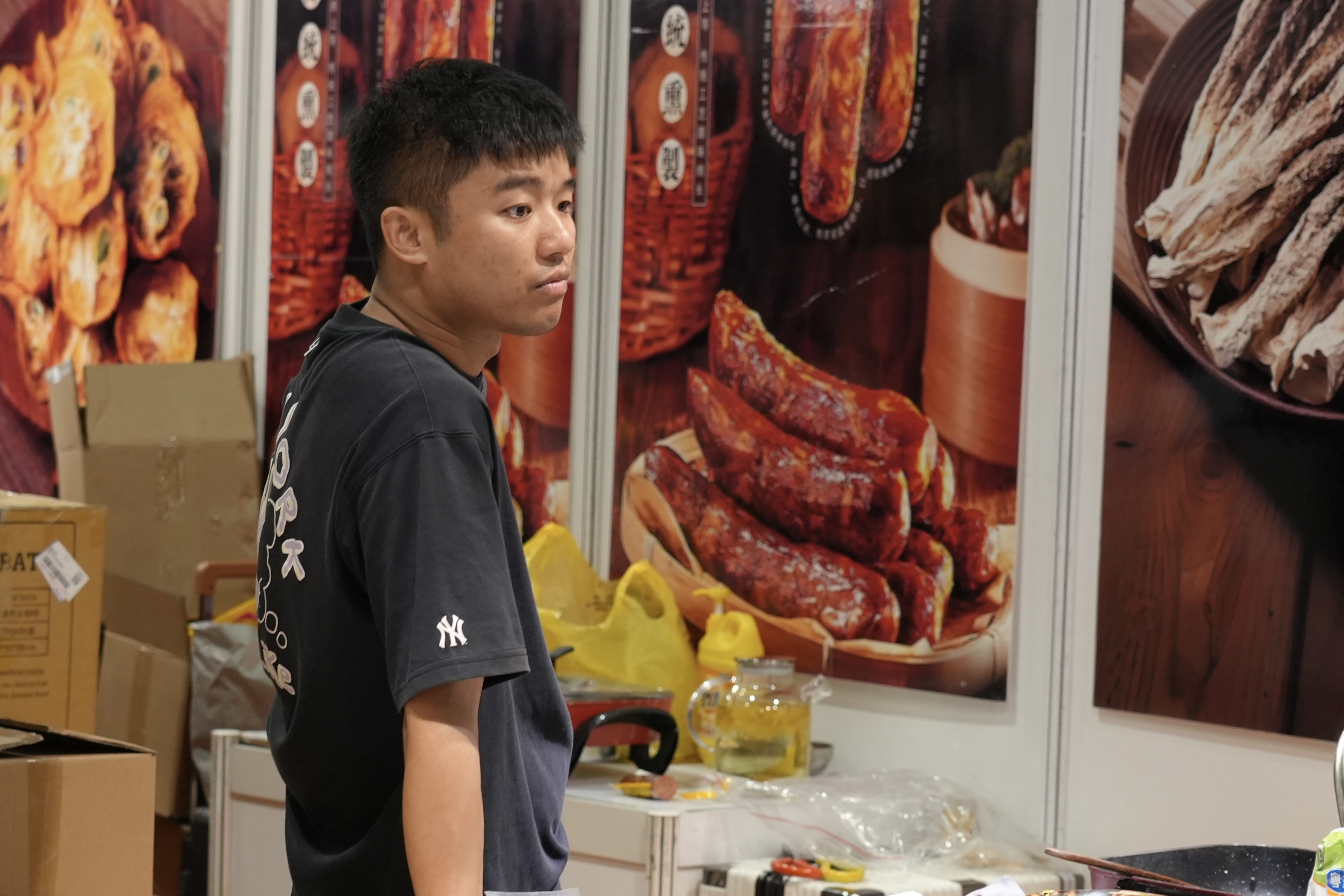 來自內地的參展商小黑,帶了臘腸等乾貨來,有不少市民駐足詢問。他說,今日銷量一般,還未賣出任何產品,「希望過幾日會好些」。