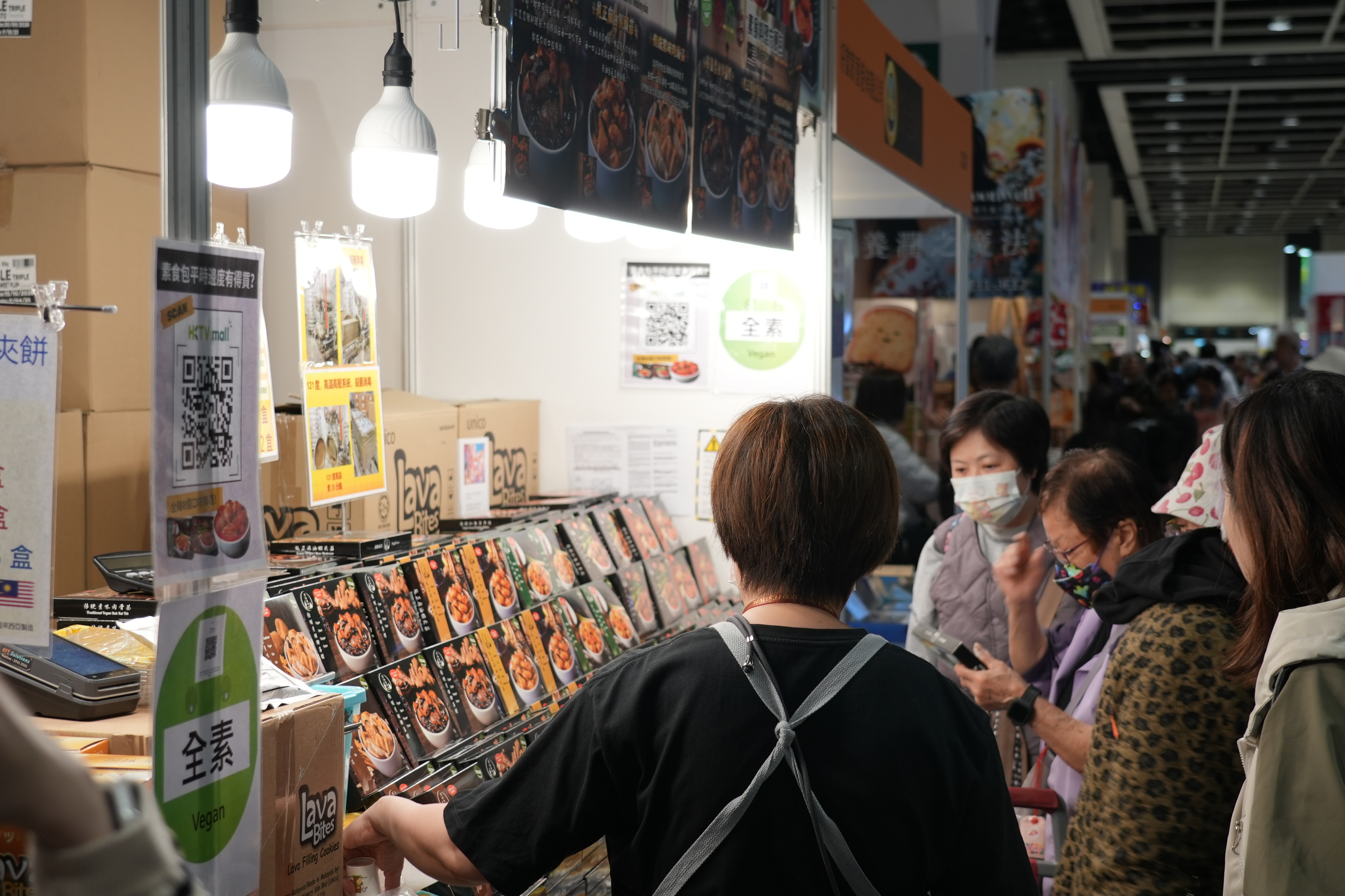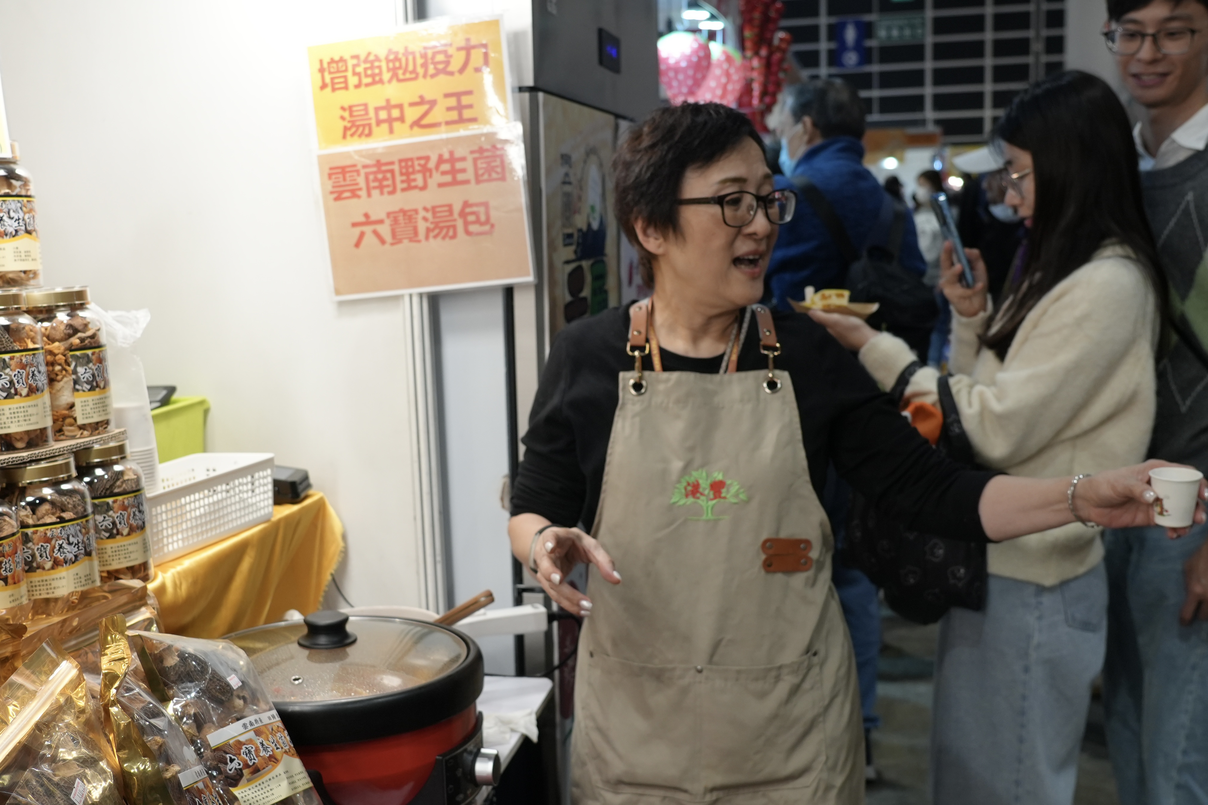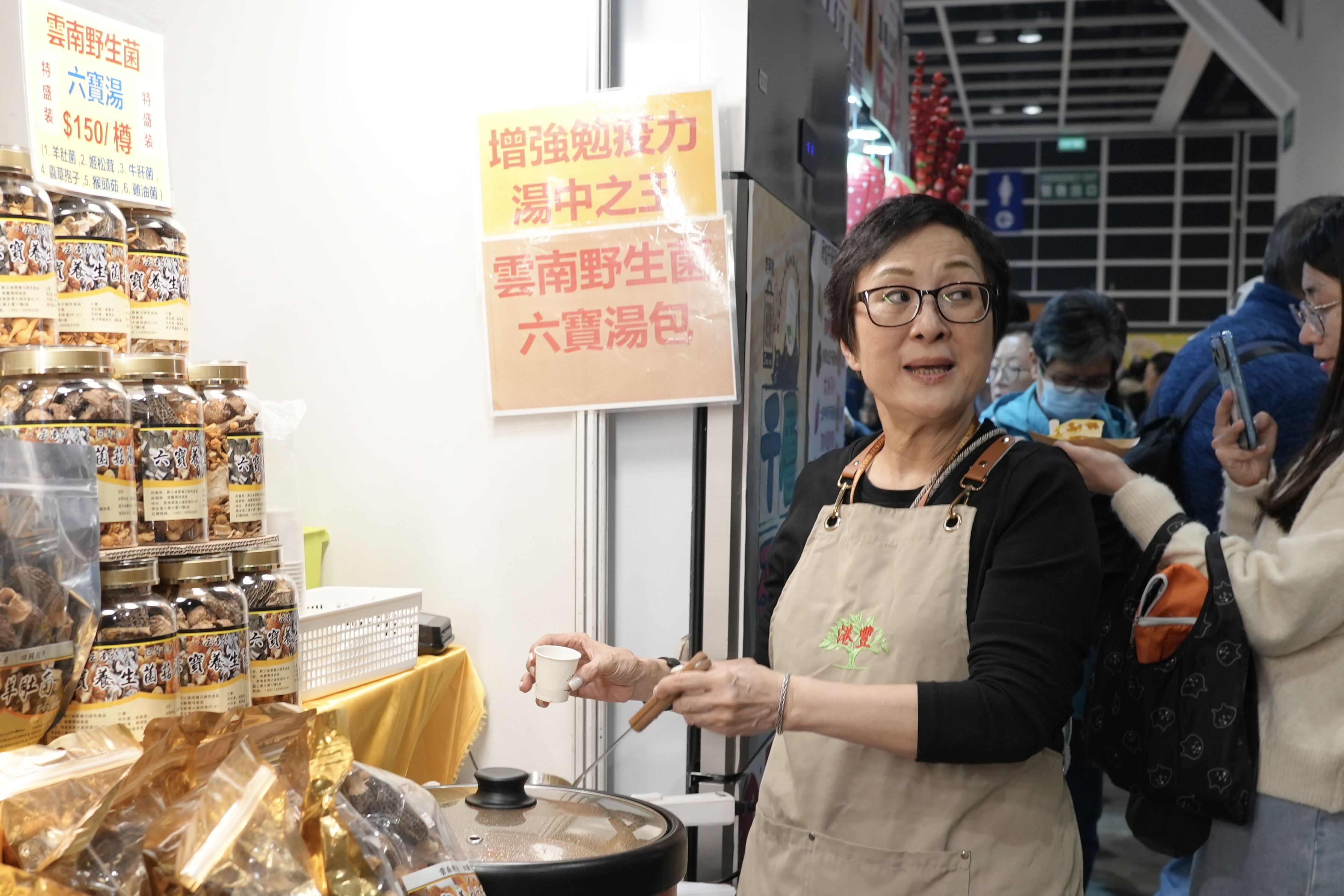 營養湯包參展商張小姐指,今年入場市民多為「試食、試飲」,「看中真的喜歡才會消費」,但今天開舖半日已經有熟客買了幾千元的自家產湯包,「湯包有營養,又可以擺耐啲」。