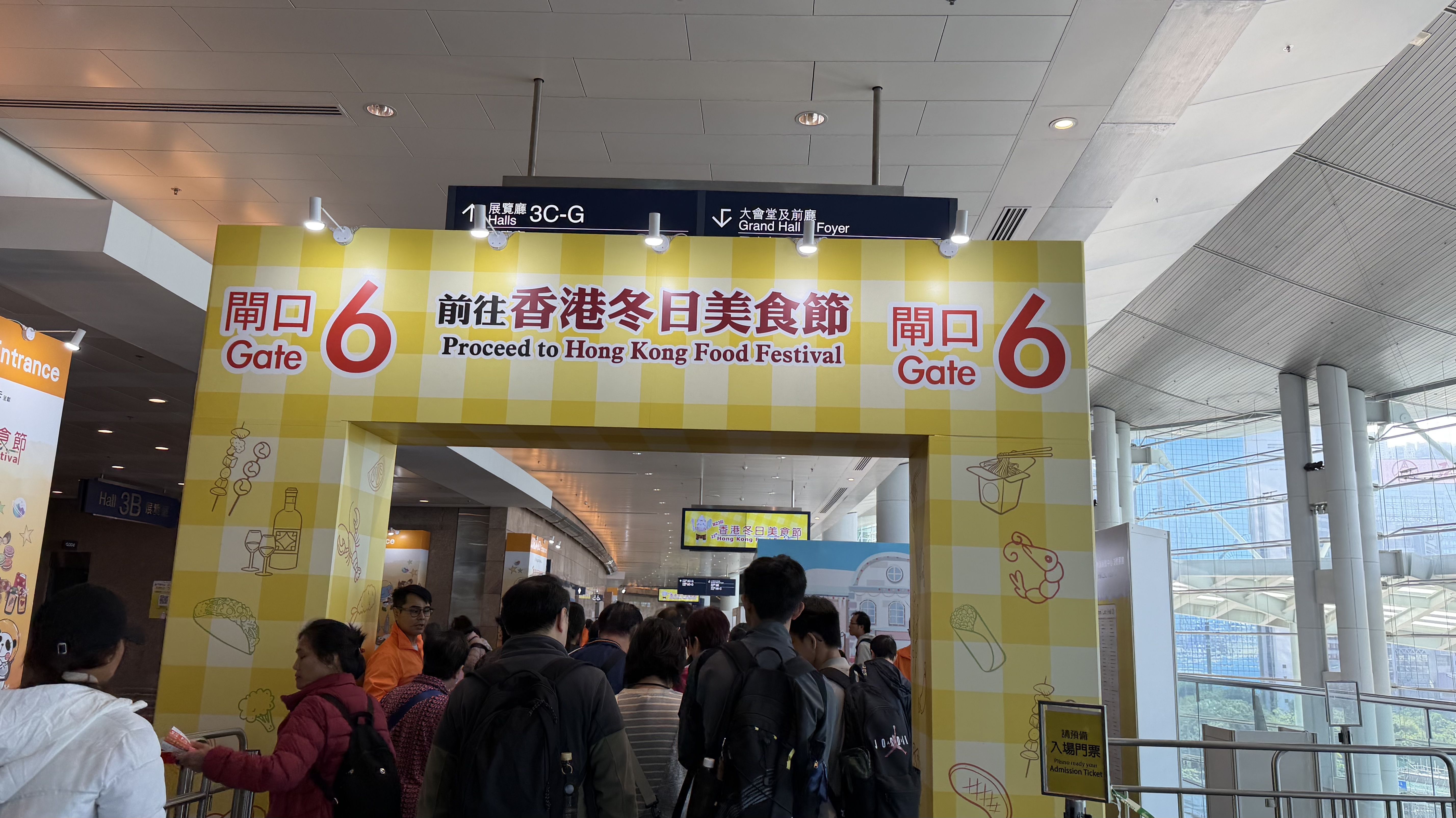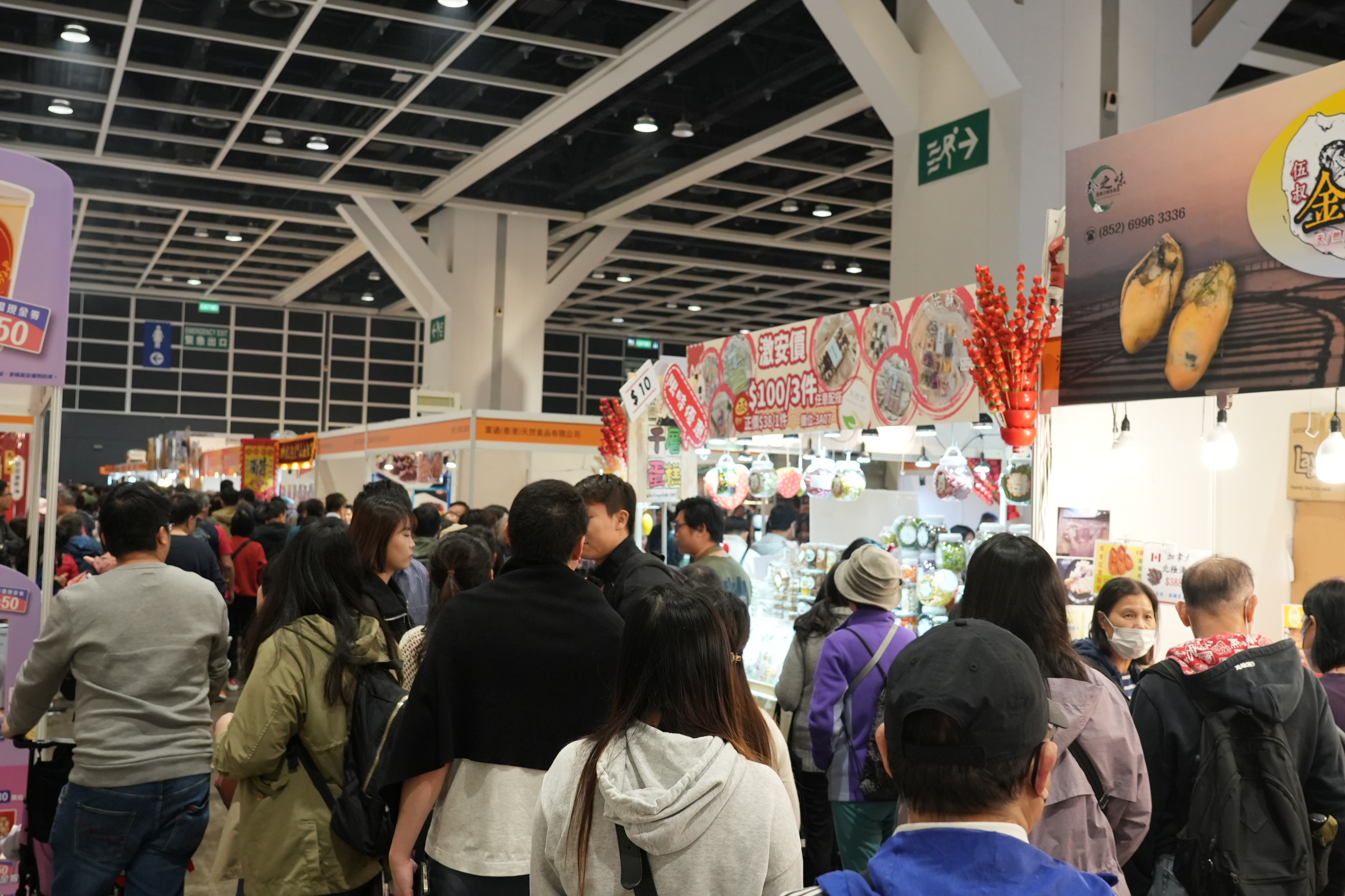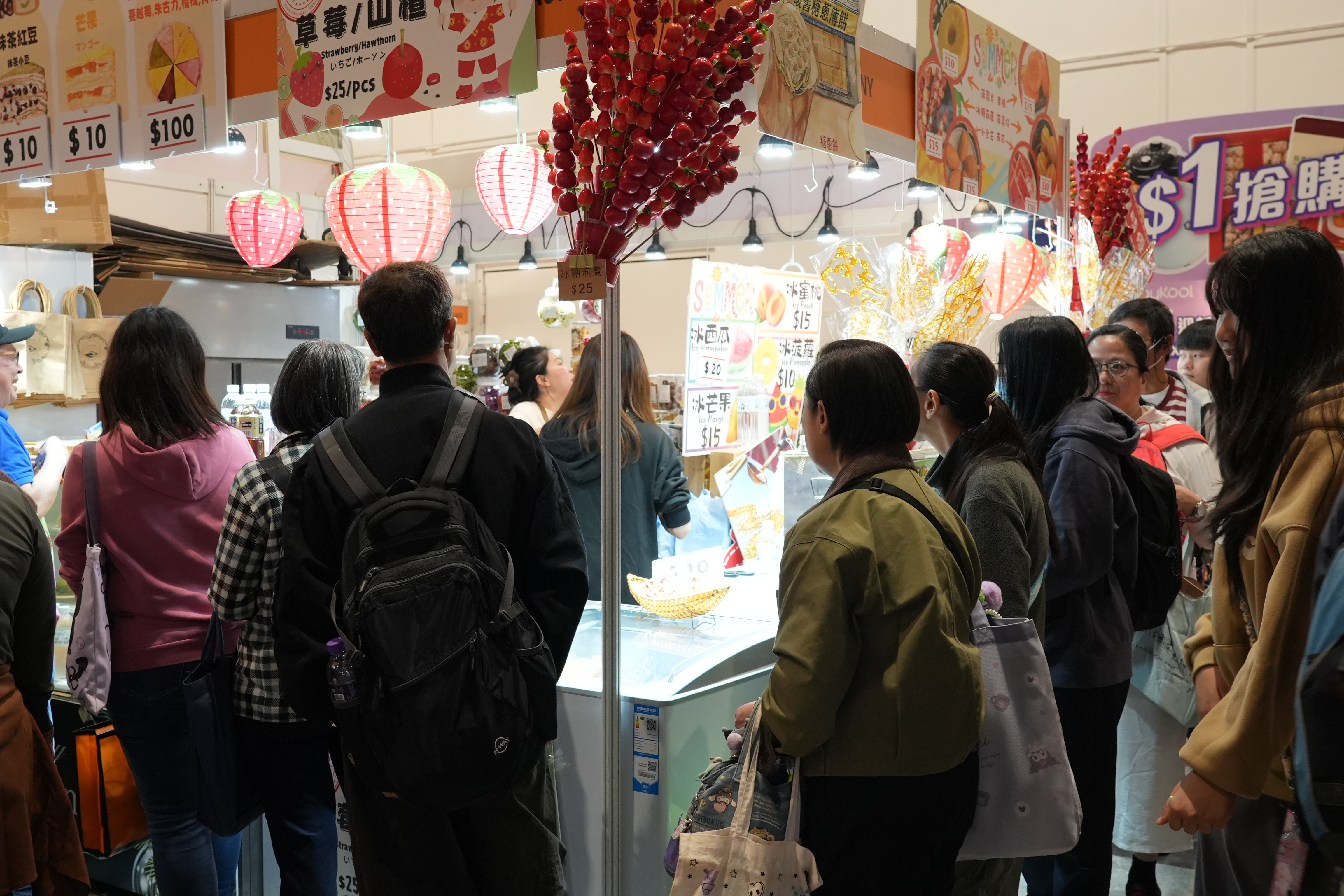 (大公文匯全媒體 記者 劉妍伶)第23屆香港冬日美食節今日(25日)首日開鑼,位於會展中心3樓3號館的入口中午起出現人龍。記者現場見到,部分可以試食的攤位一度需要排隊,亦有市民推着手推車前來掃貨。有參展商指,開舖首日已有顧客購入數千元產品。