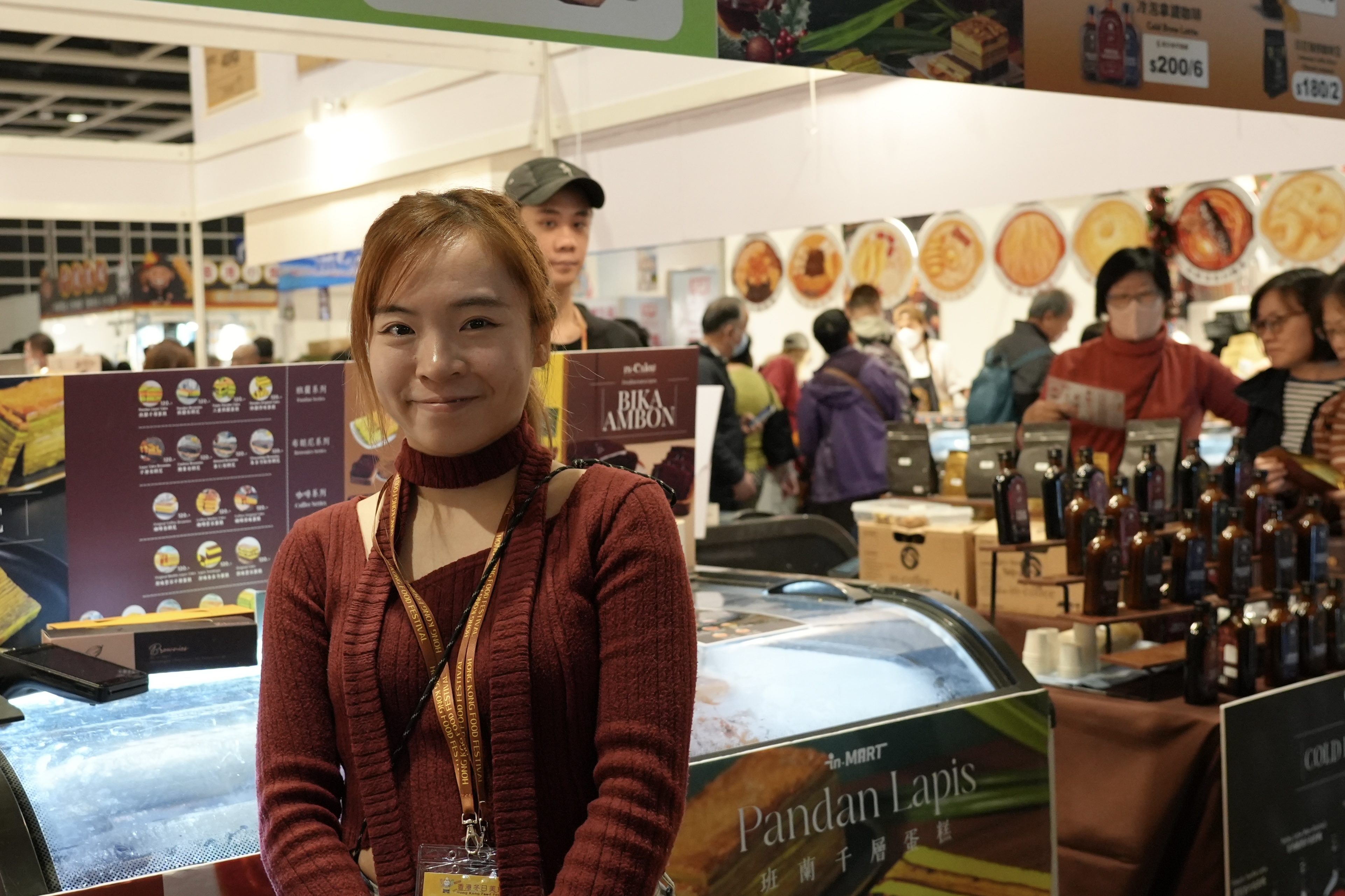 另一位參展商BoBo,今屆帶了印尼產品來展示。她指,今日市民入場情況理想,自家產的斑斕蛋糕、咖啡等印尼產品,深受顧客歡迎。她指自己過往已參加四屆美食節,感覺今年市民的消費意願與過往差不多。