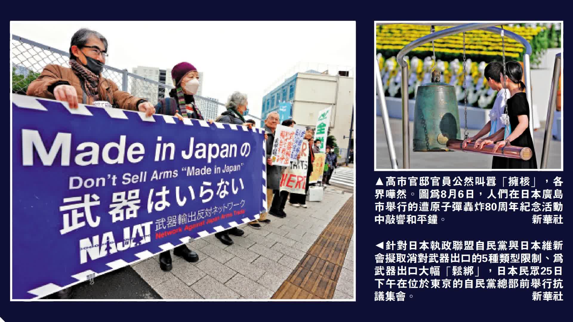 值得一提的是,日本《周刊文春》24日曝光了鼓吹「擁核」日本官員身份。報道稱,日本首相官邸高官此前被曝聲稱「日本應擁核」受多方譴責,消息人士向《周刊文春》透露,發表該言論的是日本首相高市早苗的親信、首相輔佐官─尾上定正,他負責核軍縮、核不擴散事務。
