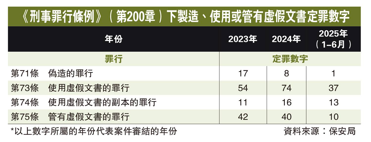 警方回覆《大公報》查詢時表示,今年1至9月,共接獲686宗涉及偽造文件的案件,共拘捕431人,香港警方一直與內地公安機關緊密合作,並已建立情報互換機制,打擊相關的跨境罪行。