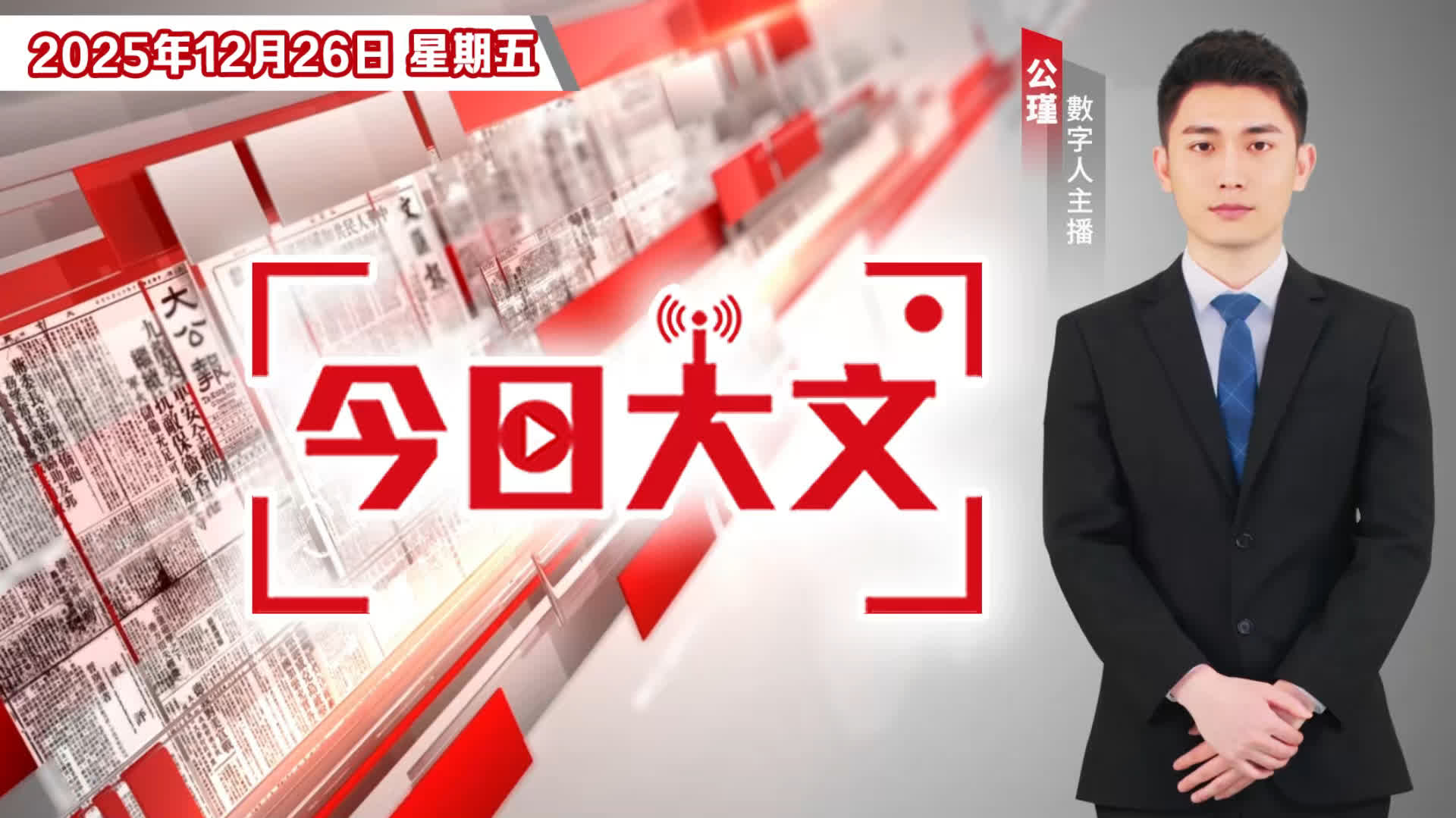 大公文匯網報道,今天是2025年12月26日(星期五),大公文匯網與您速覽報紙看點。