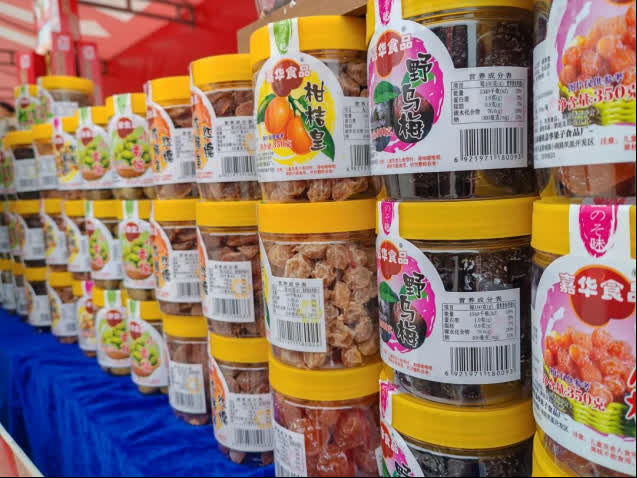 展位商家梁女士熱情推介柑橘、楊桃片等本地涼果,邀請過往顧客品嘗。展位商家李女士表示,竹鹽黃皮、枇杷等品種目前較為暢銷,尤其選用無核黃皮製作的涼果,因口感佳、對咽喉有益,深受消費者歡迎。