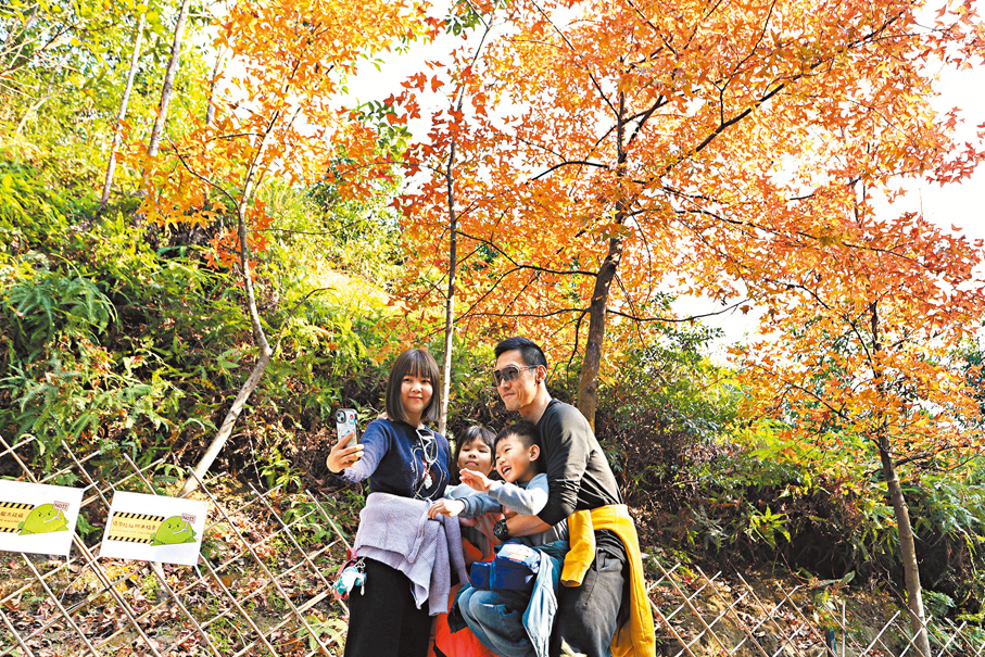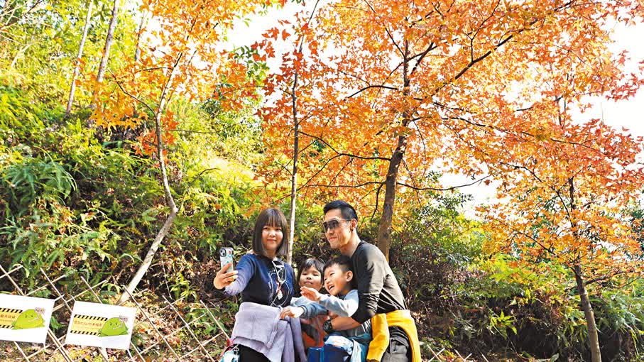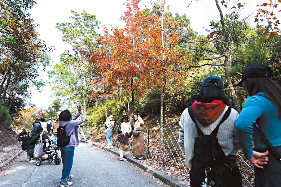 (香港文匯報 記者 李芷珊、黃艾力)聖誕節小長假今日結束,不少留港市民趁昨日假期郊遊,欣賞香港的自然風光。大熱郊遊地點之一的元朗大棠楓香林近日迎來賞楓旺季,吸引大批市民及內地旅客專程到訪,現場人流絡繹不絕,更有市民沿途拍攝紅葉美景。當中除本地市民外,有深圳旅客透過社交平台慕名而來,感受香港郊野的紅葉景致,亦有市民幾乎每年到訪,見證楓樹漸成規模,持續支持本地自然景點,又認為香港尚有不少未曾探訪之地,值得一探。另外,為疏導乘客,港鐵公司昨日開設期間限定的賞楓專車。不過,有市民決定展開近3個小時行山之旅,到大棠觀賞紅葉,欣賞香港大自然的風光。