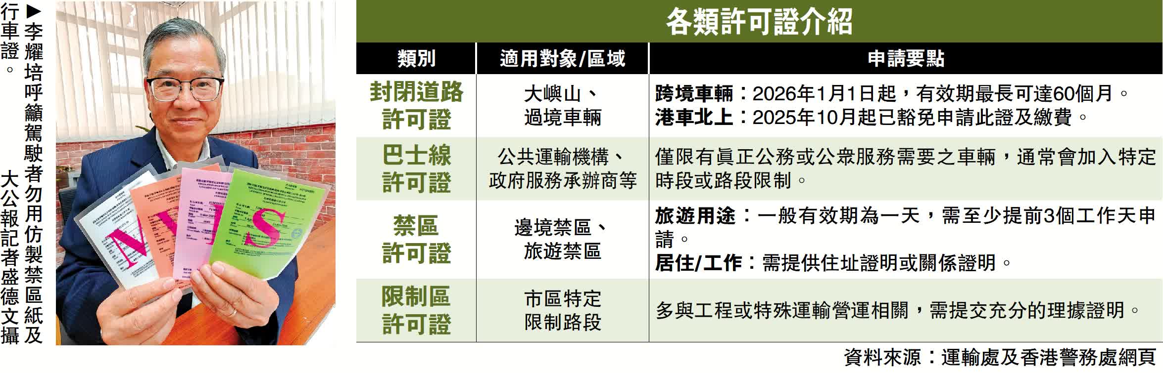 另外,特區政府在今年10月13日起,批准參與「港車北上」的申請人,毋須再申請封閉道路通行許可證(「禁區紙」)及繳付許可證費用,在接獲運輸署發出的「電子批准信」後即可在網上預約,或在毋須預約的日子直接出行。這些措施為駕駛人士帶來更多便利。
