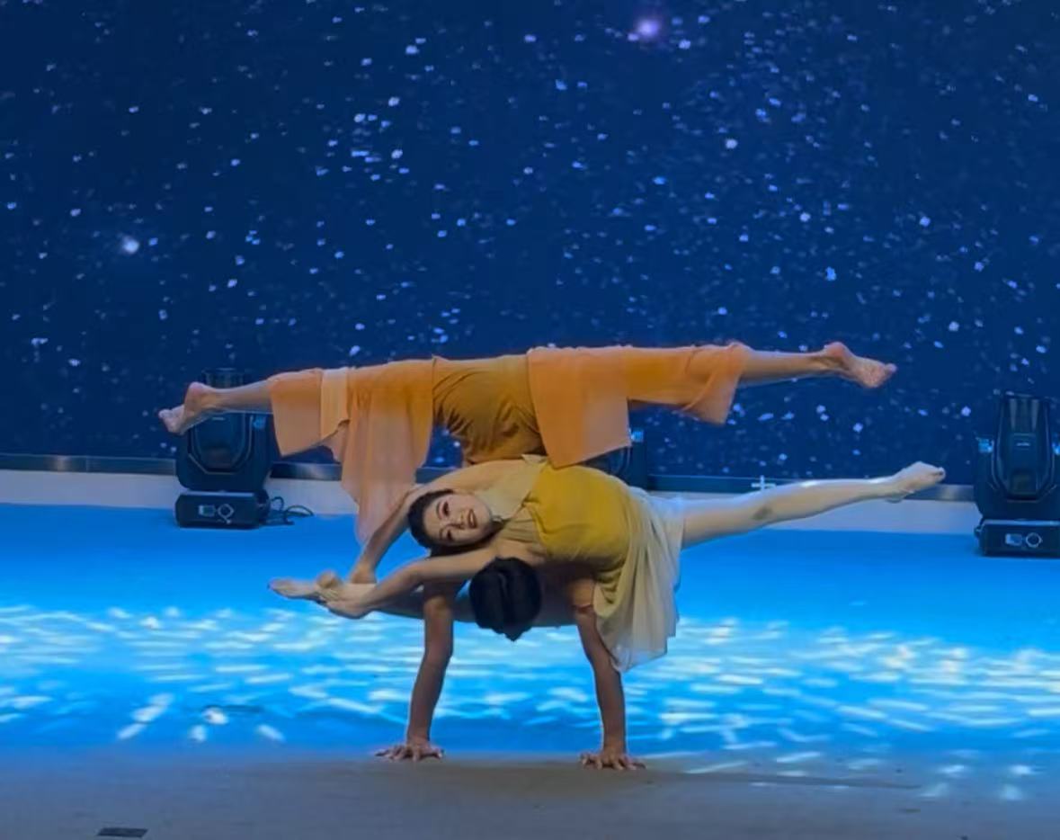 下午2時30分,隨着舞台燈光亮起、悠揚的音樂響起,演出正式開啟。本次演出涵蓋空竹、球技、蹬傘和雙人技巧等多個節目,既呈現傳統雜技的精湛技藝,又融入創新元素,為觀眾帶來豐富的視覺體驗。