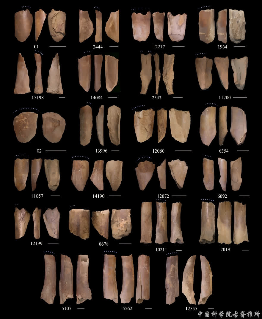 這批骨器距今1萬多年,以普氏原羚的股骨為主要原料。研究者提取標本的表面痕迹信息,包括磨圓、拋光、微劃痕分布與方向性等,結果顯示這批骨器的磨損特徵與用於加工獸皮的實驗樣本高度一致,表明它們是處理獸皮的工具。