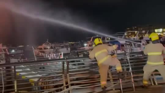 大公文匯全媒體報道,今日(28日)晚上8時許,一艘停泊於西貢萬年街對開的遊艇突然起火,消防到場開喉灌救,迅速將火救熄,人員正調查起火原因。根據網上視頻所見,火勢非常猛烈,遊艇迅速陷入火海,黑煙衝上半空,消防在岸邊開喉灌救。