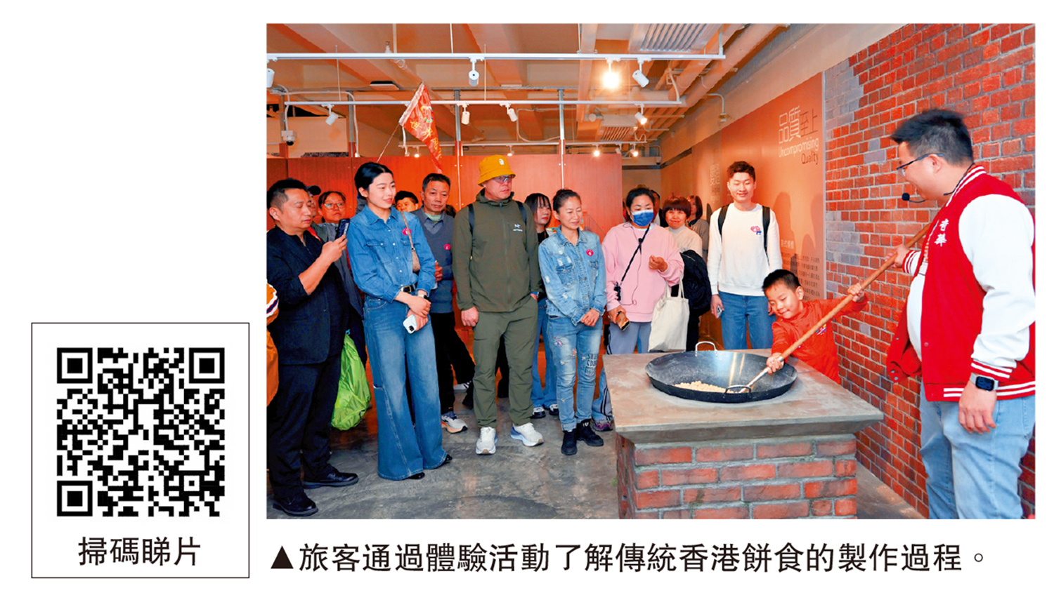 政府提出發展香港工業品牌旅遊,有本地餅食集團響應設立體驗館,本月初迎來首個旅行團,旅客除了「打卡」留念,更可以體驗炒蓮蓉,感受傳統「過大禮」禮餅的重量,親手製作杏仁餅,導賞員沿途講解品牌背後故事。