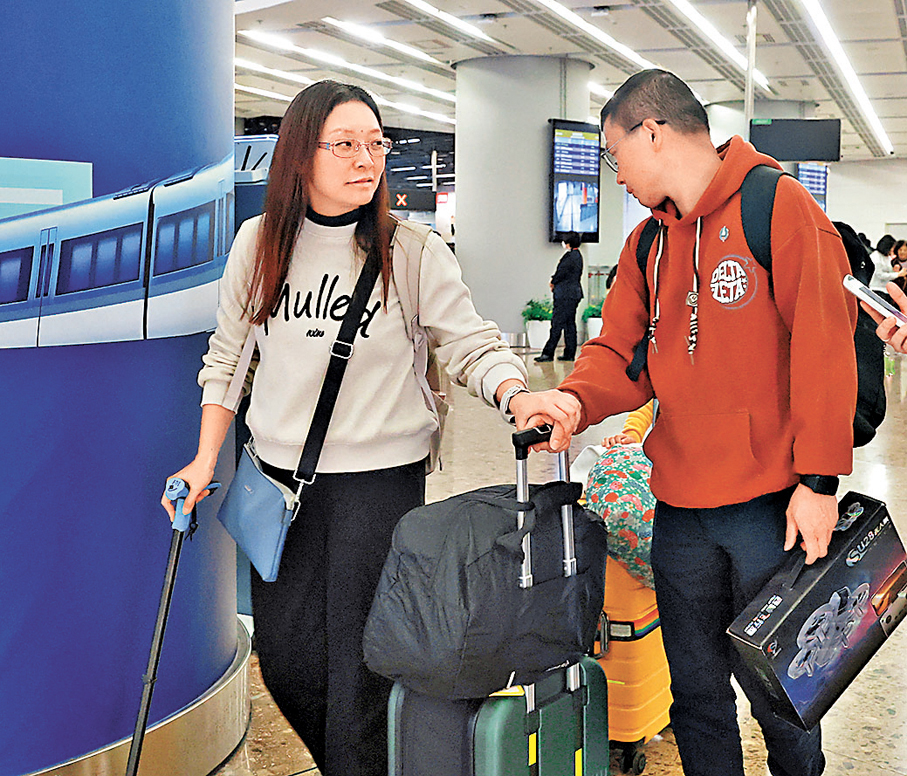 香港文匯報記者昨日在高鐵西九龍站所見,抵港層不斷有港人家庭出閘。由於有4天假期,部分人選擇到較遠的地方旅遊,其中黃女士帶同9歲女兒及婆婆到福建廈門旅遊4天,「今次沒有刻意安排行程,輕鬆休閒為主,如去鼓浪嶼看風景等,感到非常開心。」她表示廈門消費較低廉,一行3人的4天旅程只花費數千元,租住可以看海景的賓館,每晚房租只要數百元。