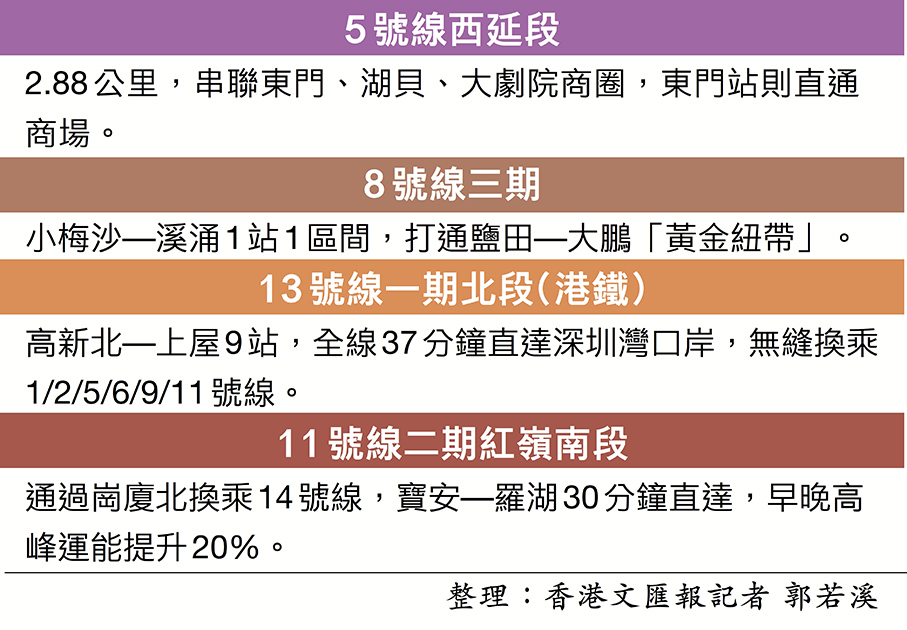 近幾年,深圳地鐵密集「上新」,從2022年「五線三樞紐」集中開通,到2024年5條新線(段)齊發,再到2025年6條線(段)嶄新亮相,4年間累計開通地鐵14條,樞紐3座,總長度達203.22公里。