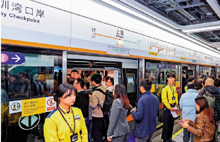 首發當日,豐富的特色活動讓出行充滿儀式感。車廂內輪番上演精彩的聲樂表演,掃碼參與互動,就能贏取限量開通紀念票。深圳灣口岸站和上屋站設置的簽名祝福牆前人頭攢動,乘客紛紛寫下對新線開通的祝福;沿線車站還推出專屬紀念卡領取活動,收集印章可兌換限量文創紀念品。