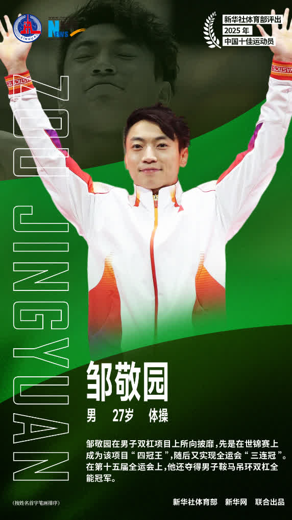 新華社體育部評出2025年中國十佳運動員如下(按姓名首字筆畫排序):