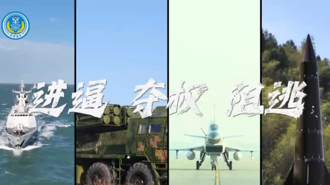 圍島進逼,奪取制權,精準尋殲,插翅難逃,東部戰區發布軍事演習現場視頻《進逼 奪權 阻逃》。