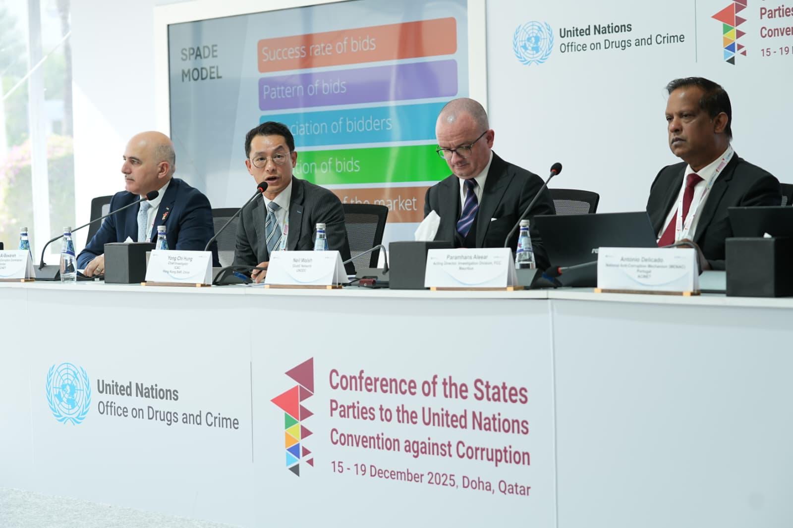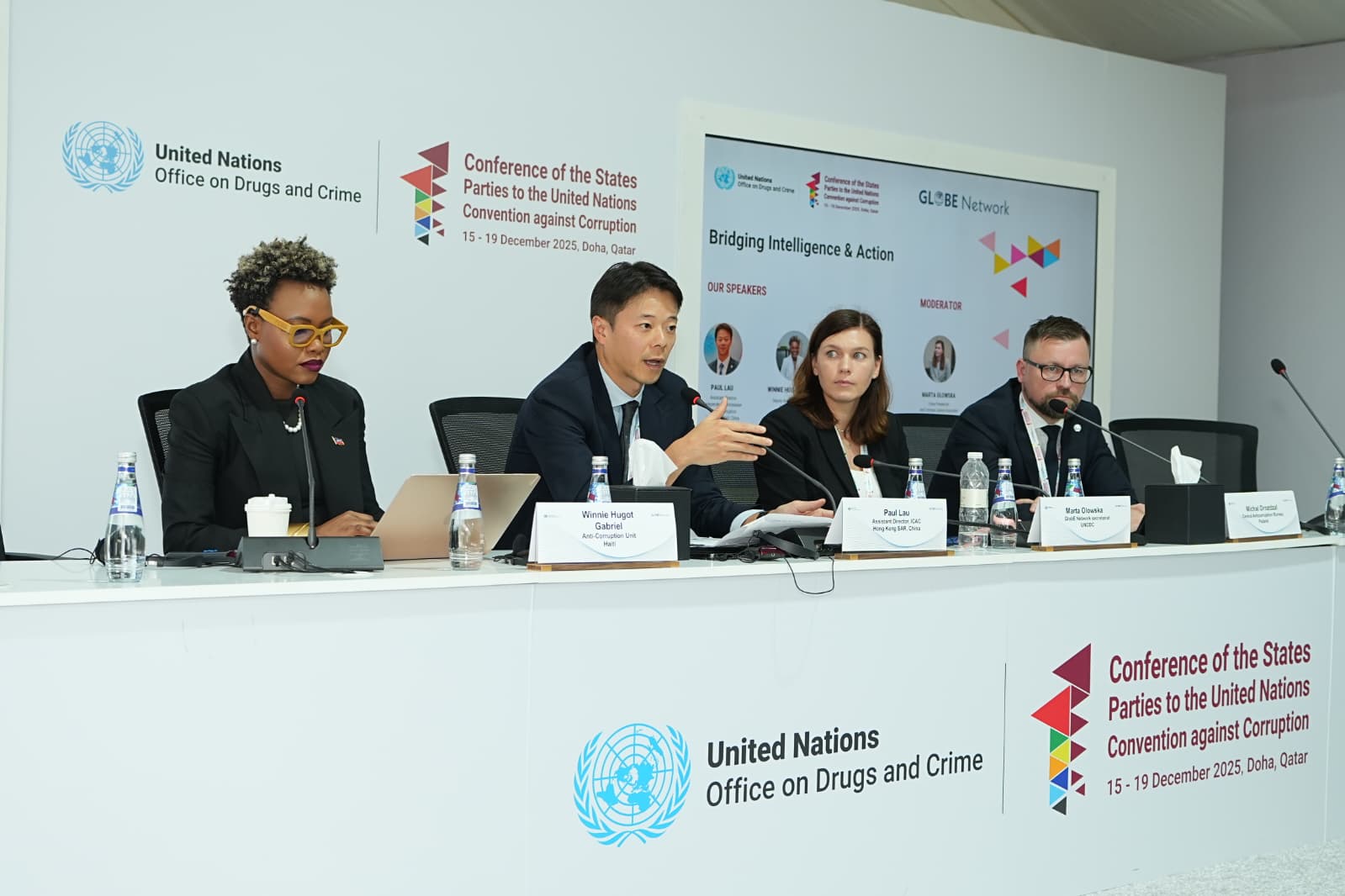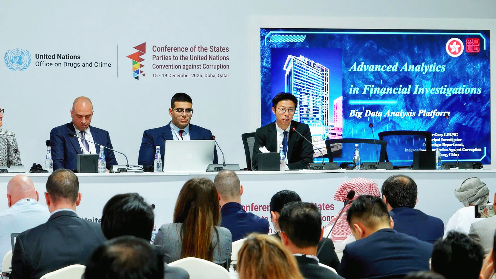 廉署團隊以國家代表團成員身分出席喺卡塔爾首都多哈舉行嘅「《聯合國反腐敗公約》締約國會議第11屆大會」。呢個會議係促進《公約》實施嘅全球主要論壇。廉署團隊與全球超過兩千名反貪同儕交流探討,分享提升全球反貪能力嘅策略與實踐。此外,團隊亦出席咗由聯合國毒品和犯罪問題辦公室(聯合國毒罪辦)主持嘅「全球反腐敗執法機構業務網絡」(GlobE網絡)指導委員會會議,共同商討GlobE網絡嘅未來發展方向及工作策略。