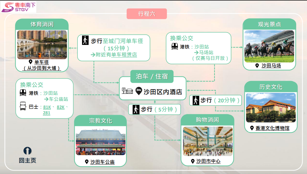 景點:單車徑、沙田馬場、沙田車公廟、沙田市中心、香港文化博物館