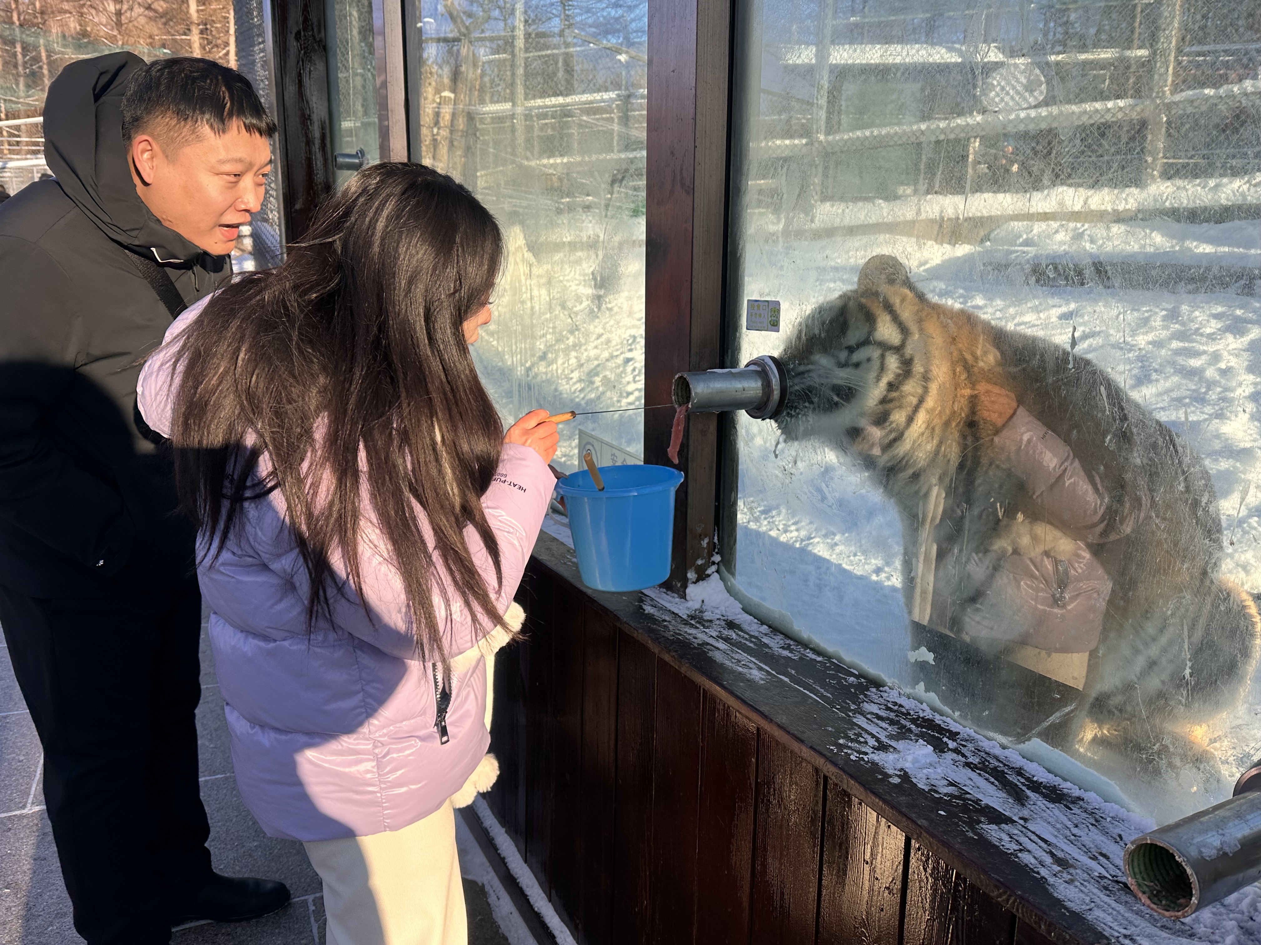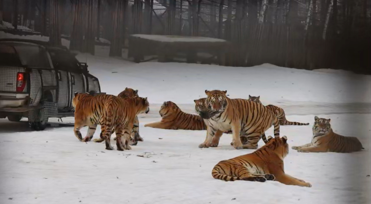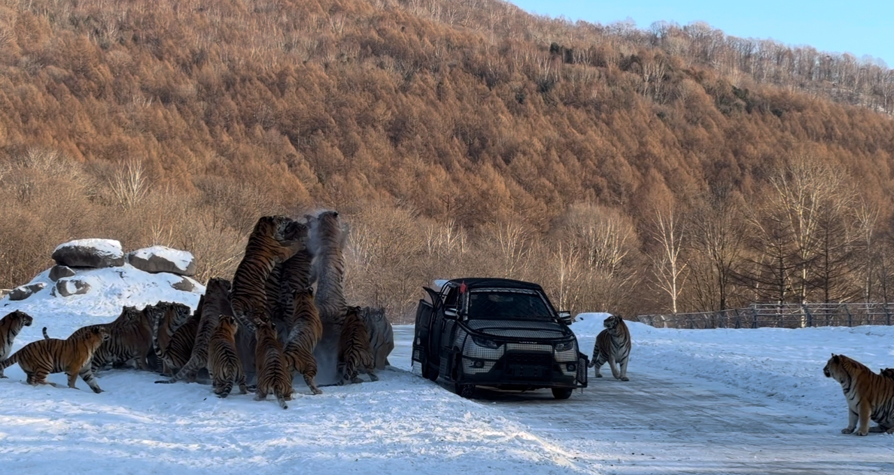 (大公文匯網記者王欣欣 黑龍江報道)每到冬季,黑龍江省橫道河子的東北虎總會火熱「出圈」,數十隻膘肥體壯的猛虎在雪地上爭搶捕食的畫面,引眾多網友圍觀,也吸引了天南海北的遊客前來一睹獸中之王的風姿。都說在冰天雪地中自由奔跑,才是東北虎該有的樣子。東北虎在白雪的映襯下,毛色更加鮮艷耀眼,畢竟它們是分布在最北端的一種老虎。