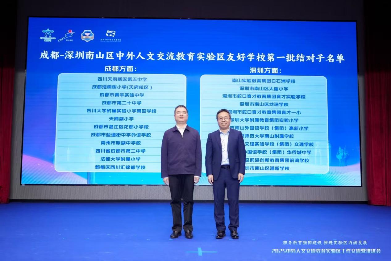 (大公文匯網記者 李望賢 深圳報道)作為廣東國際化程度最高的城區之一深圳市南山區,正積極開展高水平基礎教育對外開放和合作交流活動,在中外人文交流、港澳及國際教育合作、國際課程建設等方面取得豐碩成果。深圳市南山區委教育工委專職副書記歐陽四波在日前舉行的2025中外人文交流教育實驗區工作交流暨推進會上透露,2026年南山區將開展系列對外交流活動,包括舉辦「全球灣區共話」活動,邀請四大灣區的代表共同進行科學創新研討,探索拔尖創新人才培養;邀請在美年輕華人赴南山尋根交流,感受科技創新魅力,此外,南山區將推動南山AI教材出海,向「一帶一路」國家等輸出優質教育資源與文化理念。