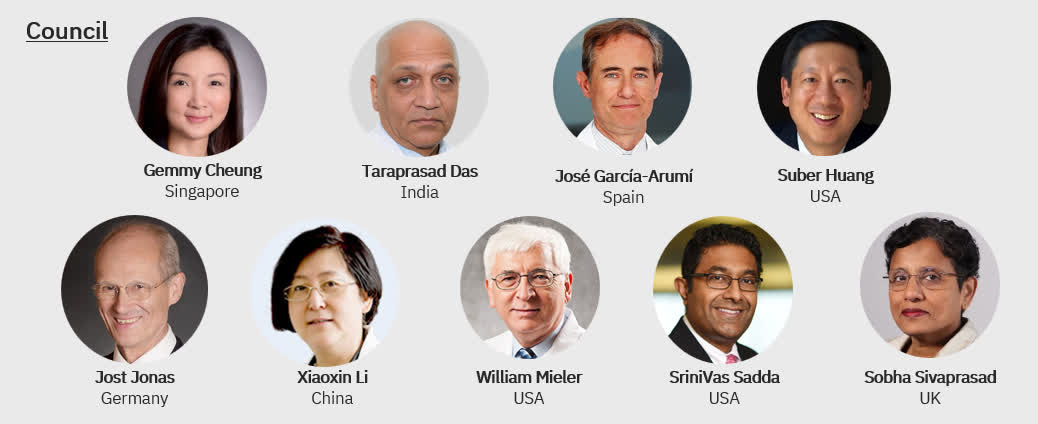 首屆理事會正式任命林順潮教授擔任主席,澳大利亞的Andrew Chang教授任秘書長,美國的Neil Bressler教授、Judy Kim教授、哥斯達黎加的Lihteh Wu教授擔任副主席,德國的Nicole Eter教授出任司庫。理事會成員還包括來自新加坡、印度、西班牙、美國、德國、中國、英國等國的多位國際知名權威專家。