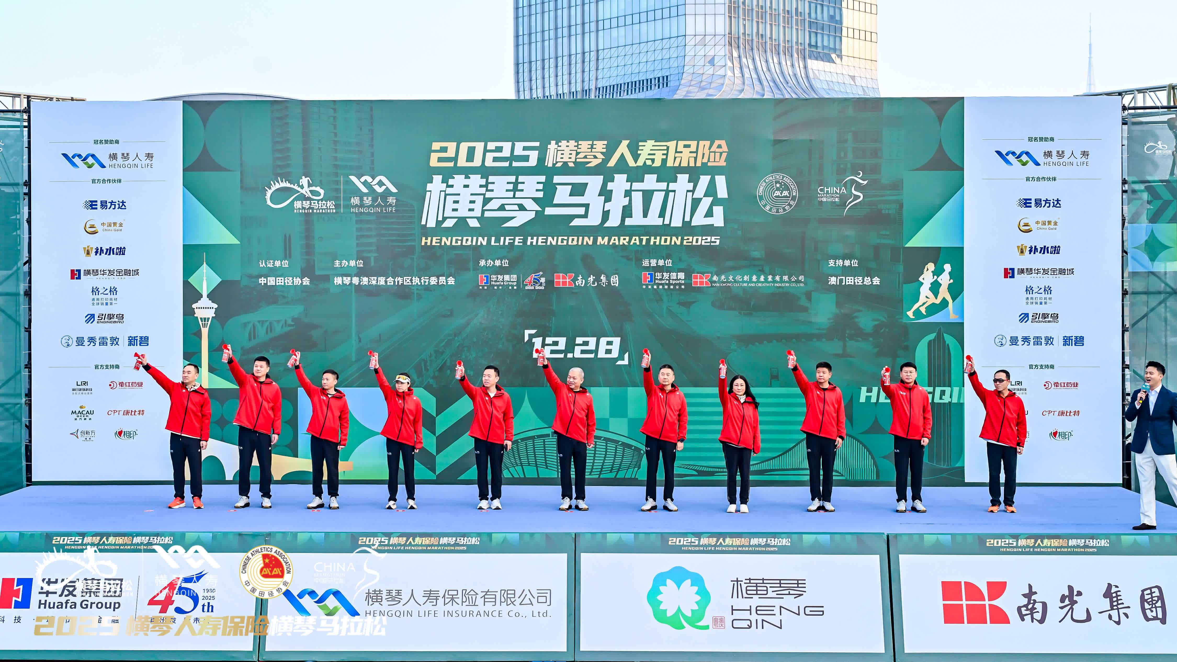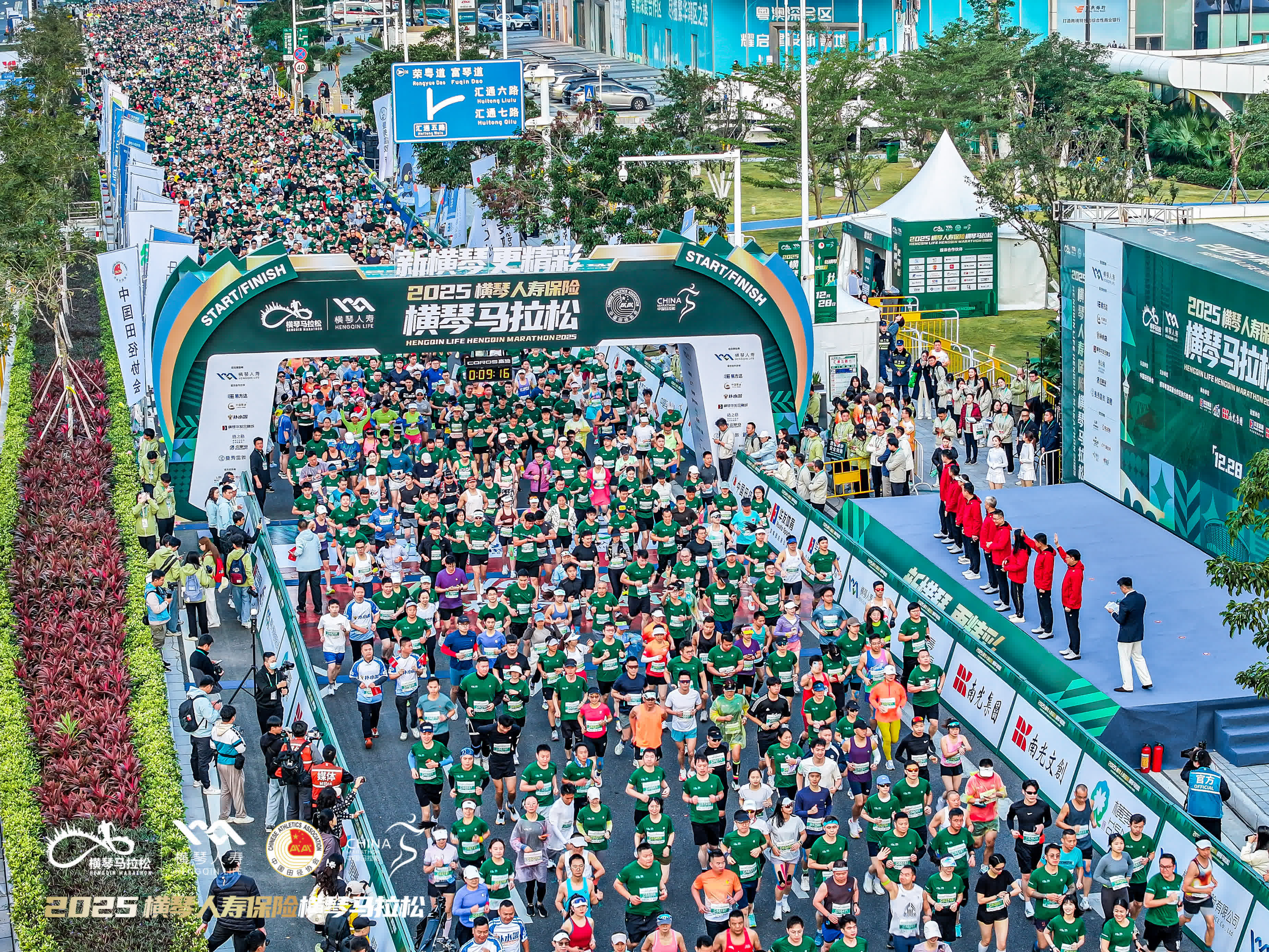 12月28日上午7時30分,2025橫琴馬拉松在橫琴金融島中央公園鳴槍開跑,來自全球的1.6萬名跑者齊聚橫琴粵澳深度合作區,用腳步丈量琴澳融合活力。本屆賽事獲中國田徑協會A類賽事認證,由橫琴粵澳深度合作區執行委員會主辦,南光集團、華髮集團承辦,南光文創、華髮體育運營,澳門田徑總會支持,集團副總經理宋曉冬出席起跑儀式並為賽事鳴槍發令。