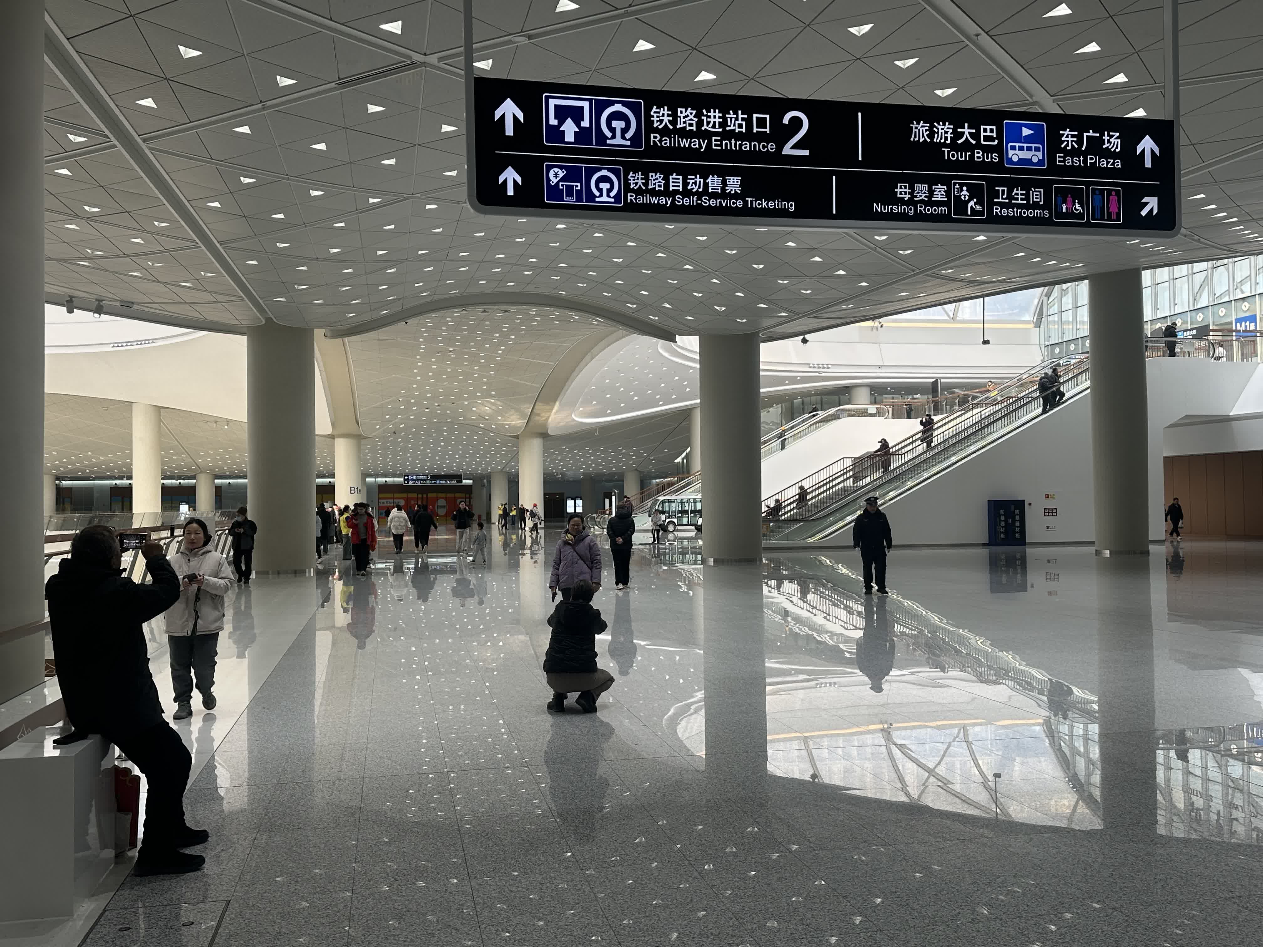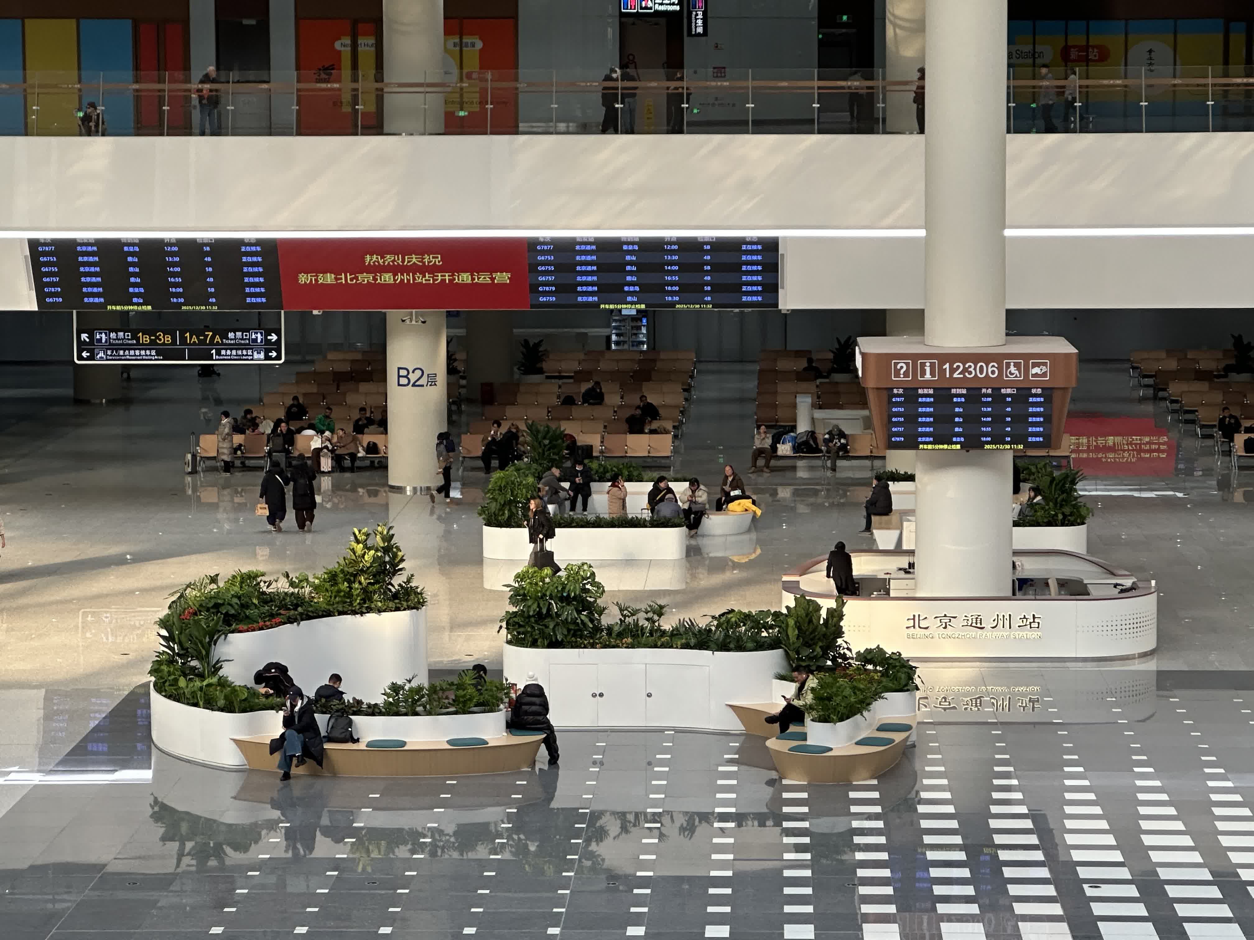 開通首日,記者在北京通州站內看到,車站內人頭攢動,不少周邊居民和旅客前來「打卡」。