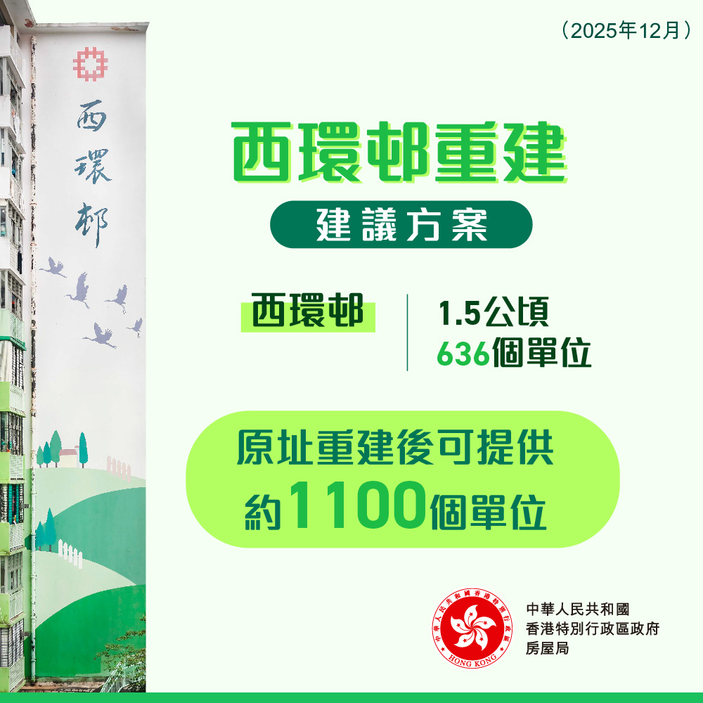 大公文匯全媒體報道,施政報告提出,房委會今年內會公布馬頭圍邨及西環邨的重建計劃。其中,房屋署今日(30日)向中西區區議會提交文件,提出重建西環邨的清拆及遷置方案。西環邨現時有636個單位,預計重建後單位數量可增加逾70%,至約1100個單位。受影響的住戶可全數遷至加惠民道第一期公屋單位,預計可於2029年入伙。